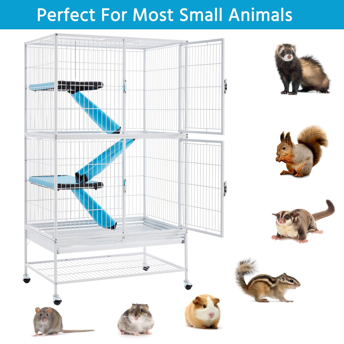 Yaheetech Rolling 2-Story Ferret Cage Small Animal Cage For Chinchilla Adult Rats Metal Critter Nation Cage W/ 2 Removable Ramps