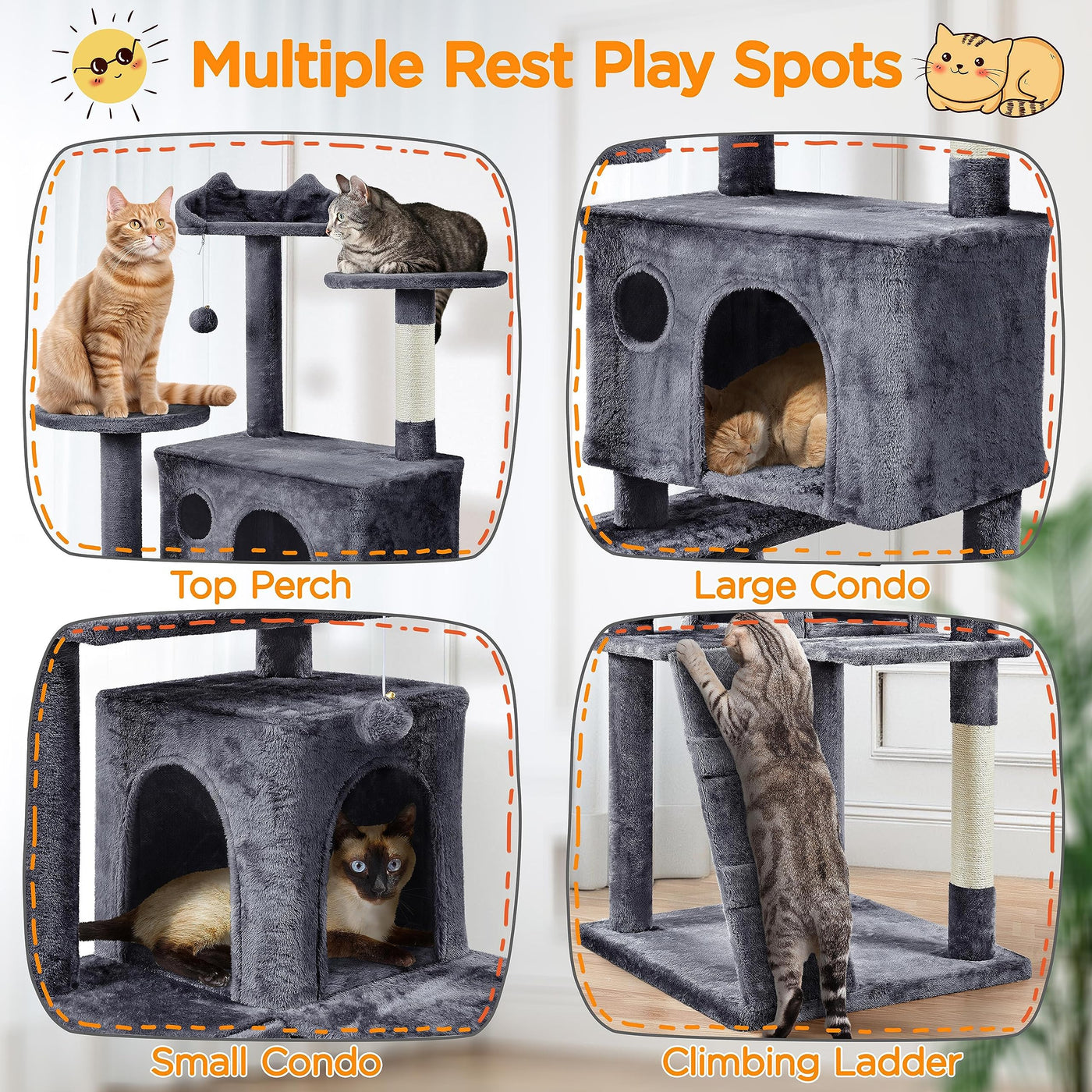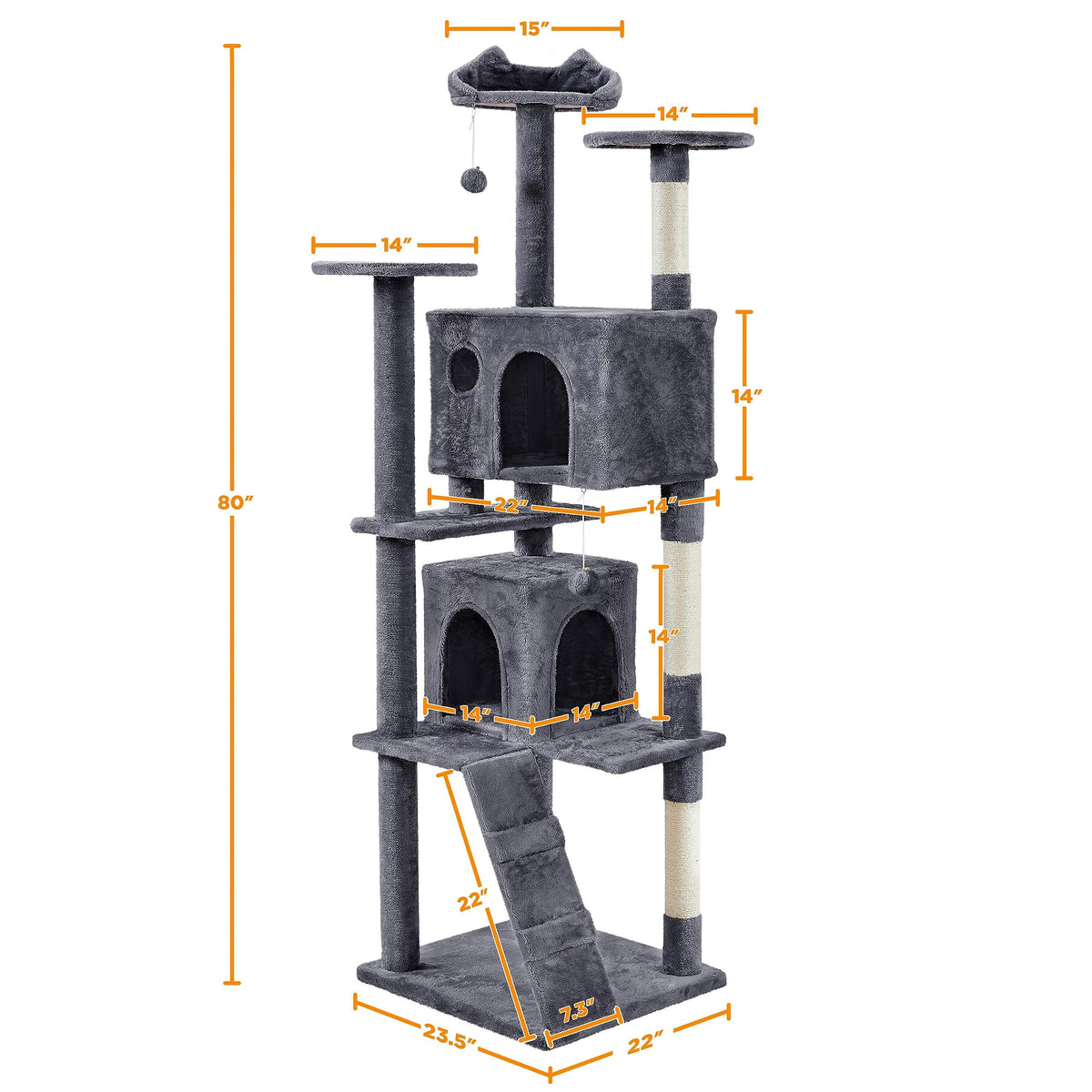 Yaheetech Xl Cat Tree, 80In Multi-Level Tower With Scratching Posts, Double Caves, Perched Platforms And Dangling Balls, Stand H