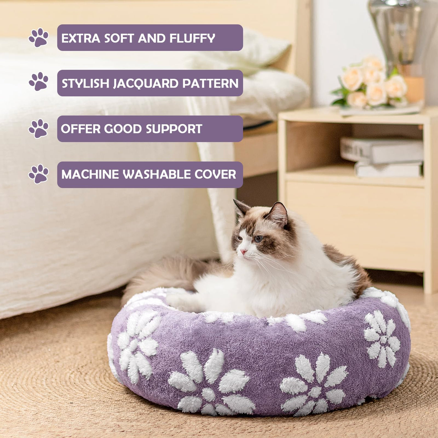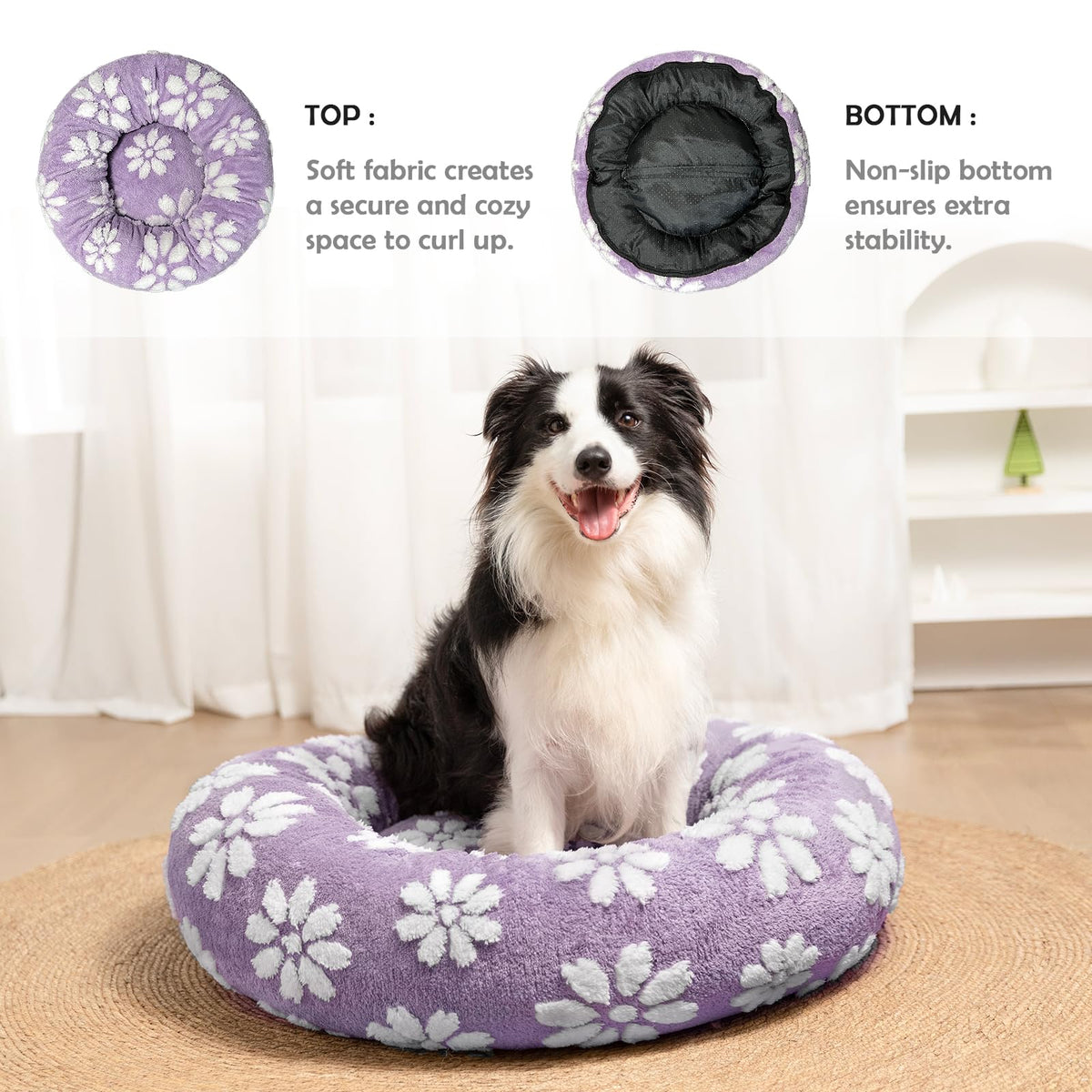Yaning Donut Dog Beds For Medium Dogs, Calming Round Cat Beds For Indoor Cats, Cute 3D Textured Flower Pet Bed With Removable Wa