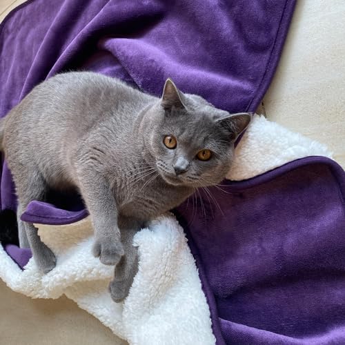 Yaning Waterproof Blanket For Bed Couch Sofa, Soft Liquid Pee Proof Pet Blanket For Dog Puppy Cat, Reversible Sherpa Fleece Furniture Protector (Dark Purple, 30X40 Inches)