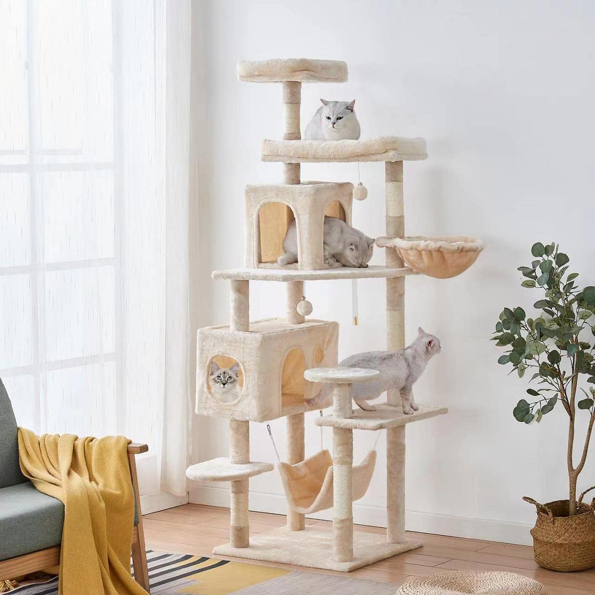 Yaruomy Cat Tree 71.6 Inches Cat Tower For Indoor Cats, Multi-Level Cat Condo Furniture With Scratching Posts Plush Perches, Act