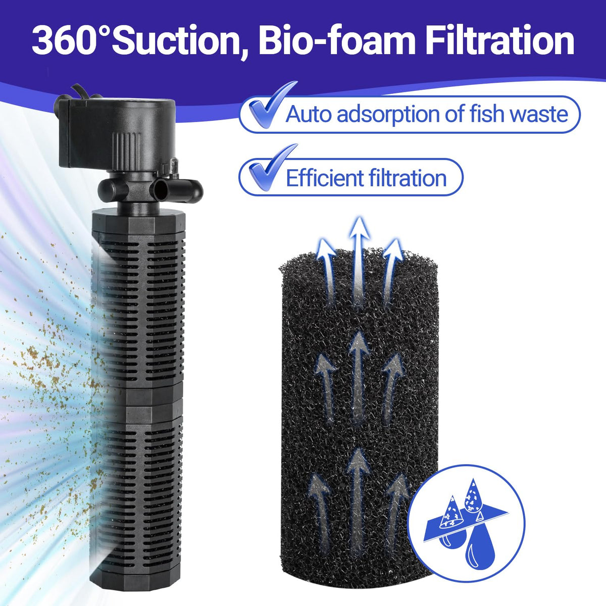 Yaubay 25W Aquarium Internal Filter for 75-150 Gallon Tanks Power Biochemical Sponge Fish Turtle Tank Filter with Aeration System Silent Submersible Filters 317 GPH