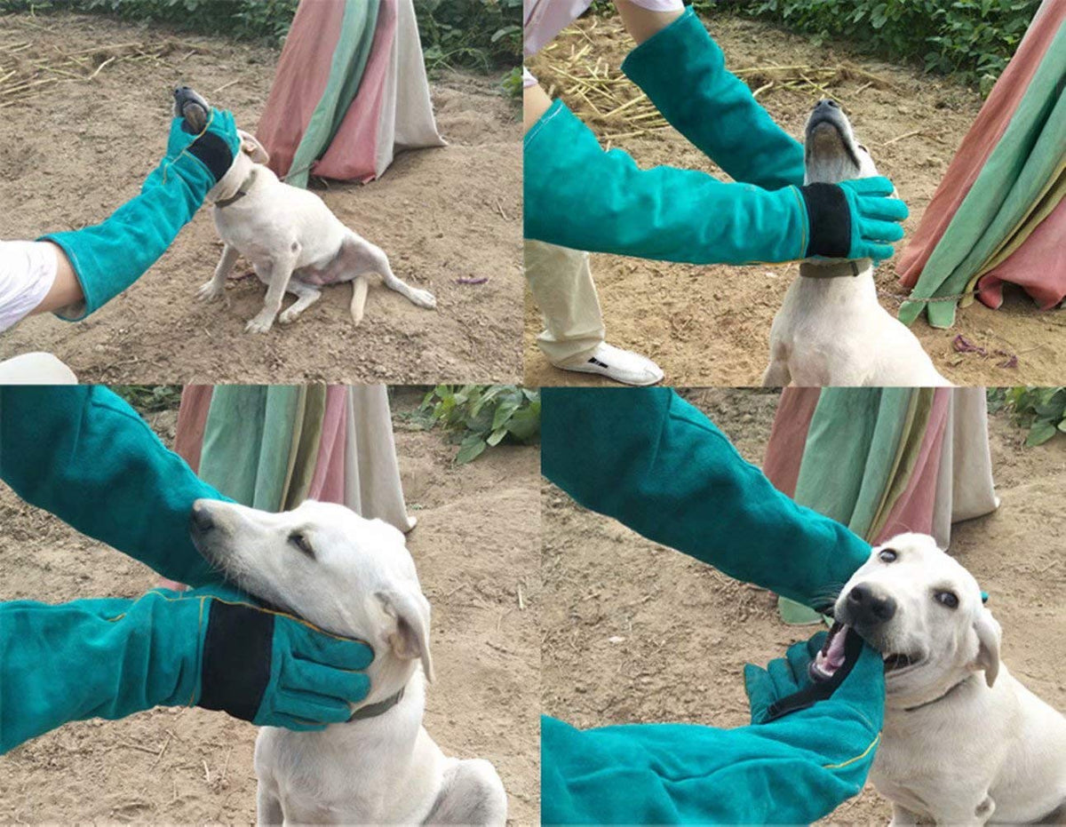 Anti-bite gloves - The Animal Handling gloves can avoid bite or scratch from cat dog parrots squirrels chinchillas hamsters rabbits and fox It could also be used when keep birds and poultry and prevent biting while playing with large birds hawks lizards snacks turtle spider etc Quality Material - Quality leather comfortable cotton lining and Kevlar fire line stitching formed a compact solid covering give your hands and forearms maximum protection Flexible Design - Reinforced wing thumb design for maximum flexibility Easy to handle and hold objects Durable stitching can ensure your safety and durability of heat-resistant Extra Length - Length: 236 inch Palm width: 53 inch Sleeve width: 768 inch The long length of the gloves are possible to protect your whole arm from potential hurts the cover places are wider compared with normal gloves Multifunctional - Not only for welding but also use for other work and home tasks can be used as welding gloves work gloves safety gloves heat resistant gloves gardening gloves camping gloves cut resistant gloves fireplace gloves and so on