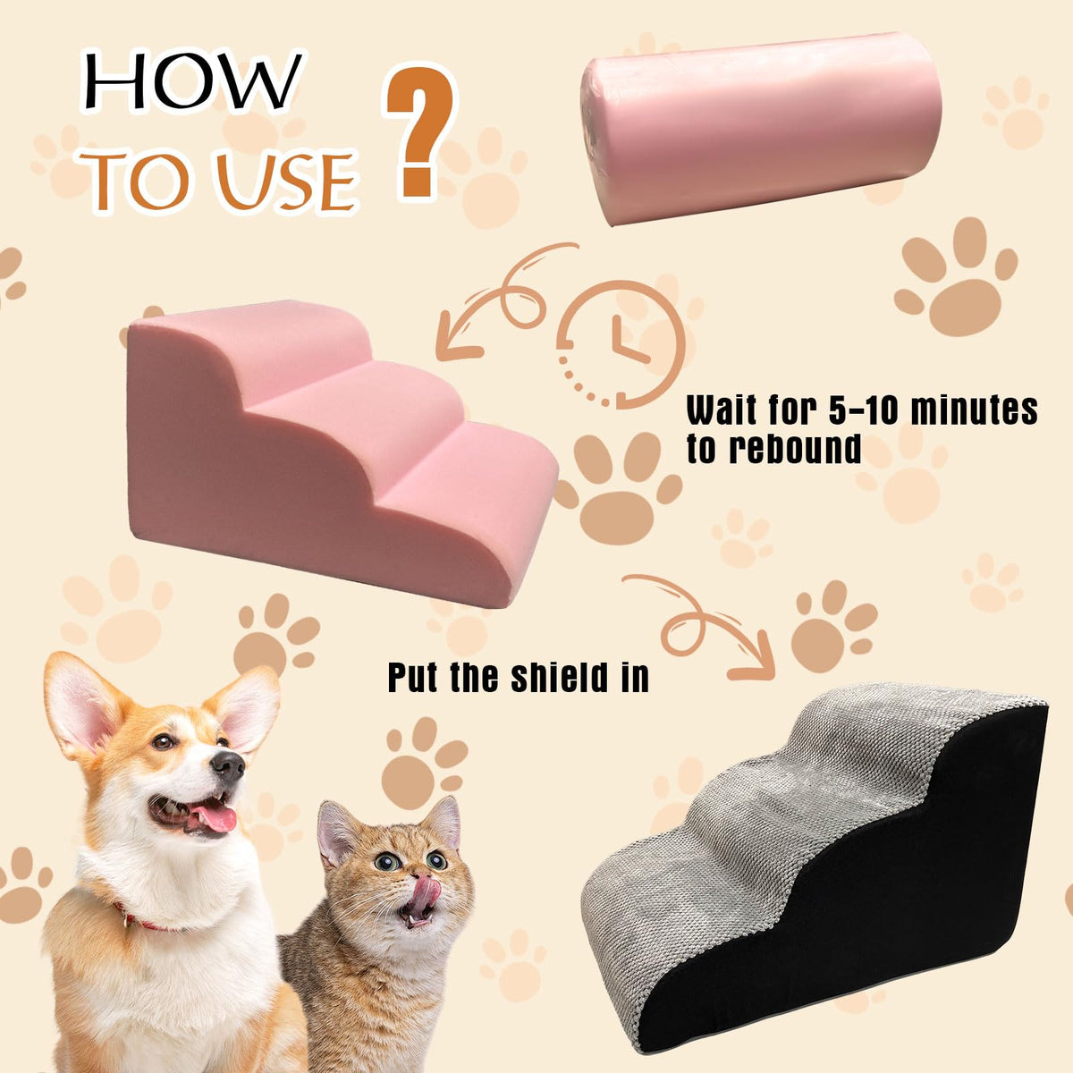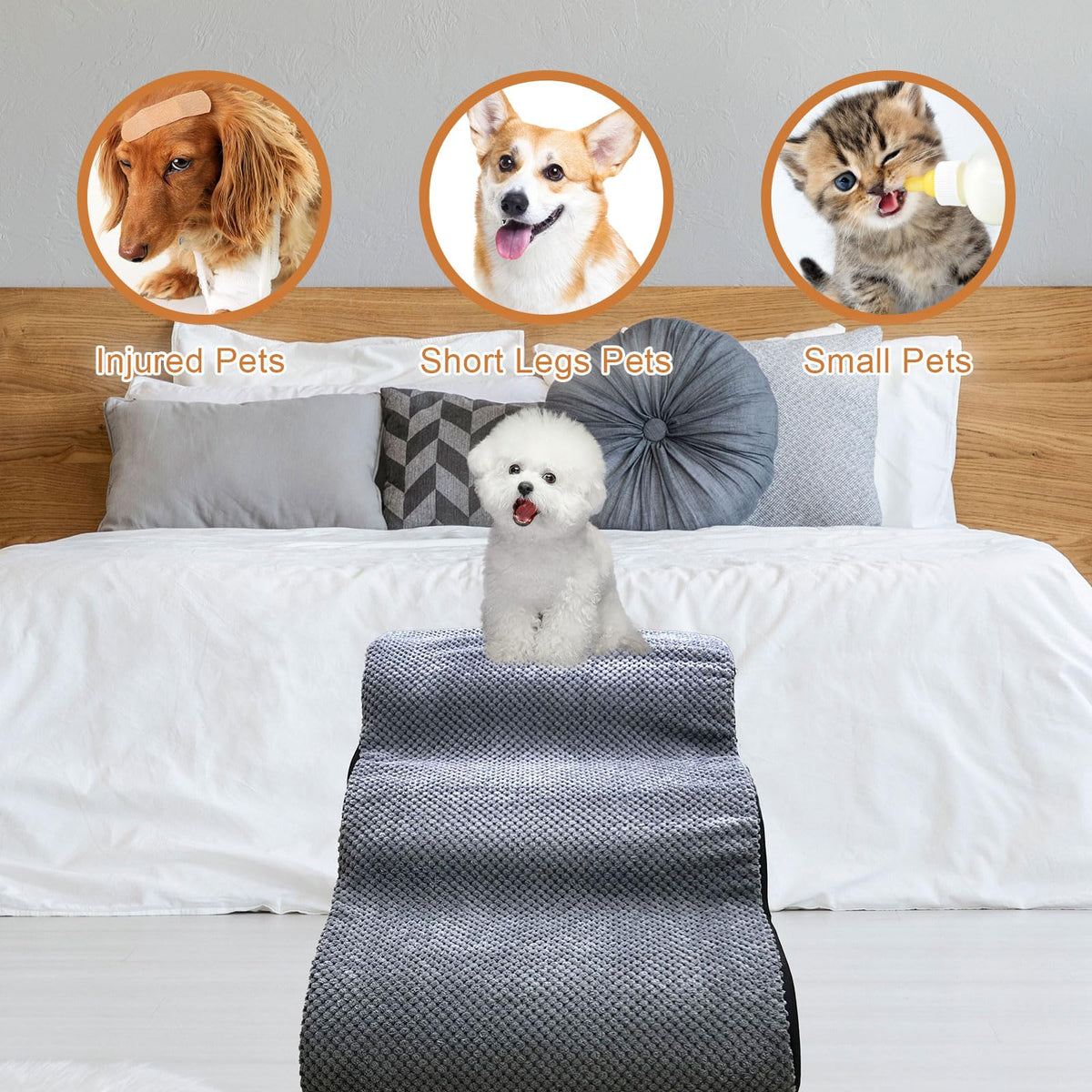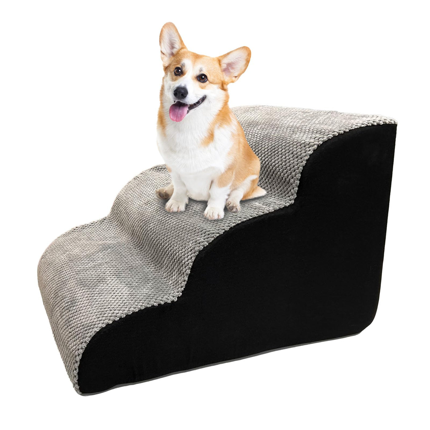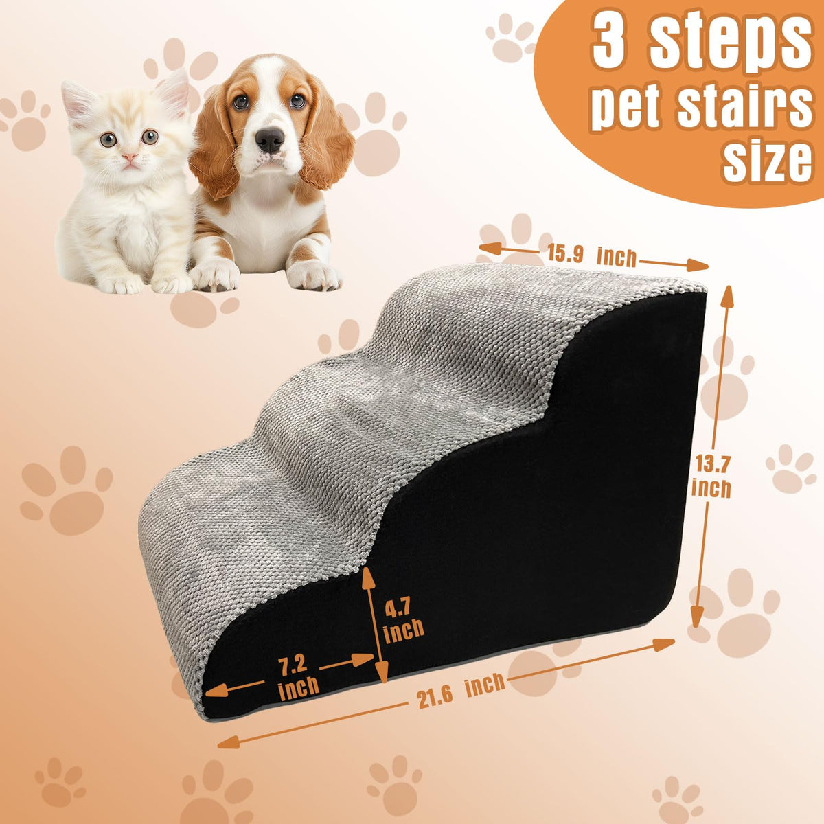 Ydy+Yqy 3-Step Dog Stairs For Small Dogs, Wide Steps With No Assembly High Density Foam Cover, Non-Slip Stable Dog Ramp For Bed
