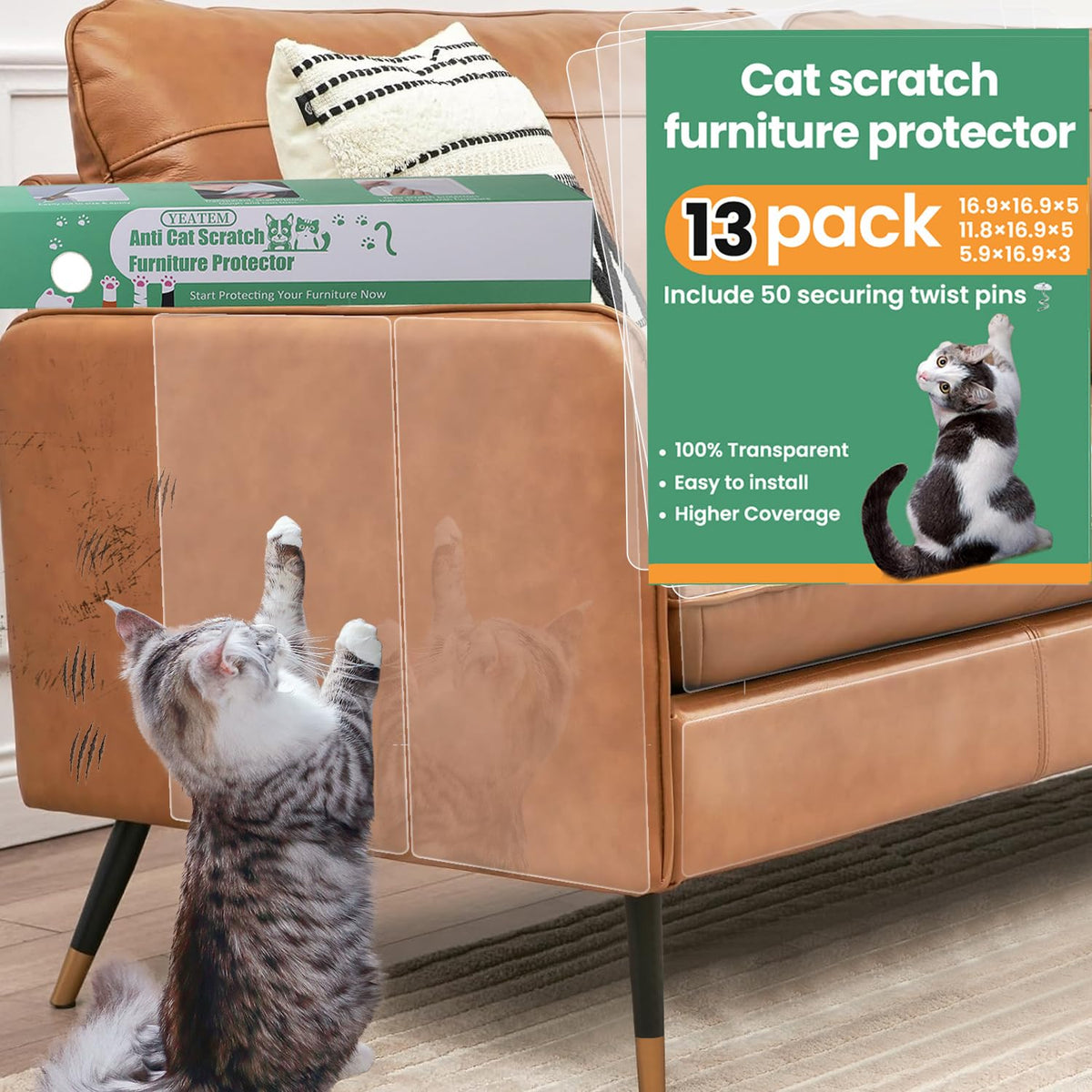 [Thick And Lengthened Better Protection]- Compared With Usual 0.06Mm Thickness Design, This Clear Single-Sided Sticky Cat Furniture Protector Thicken To 0.12Mm Can Stand Up Better To Cats Claws, When Your Sofa Is Very Long You Only Need To Stick It Once To Protect It, Because The Cat Scratch Tape Is 16.7Ft Long, Avoiding Multiple Re-Cutting!