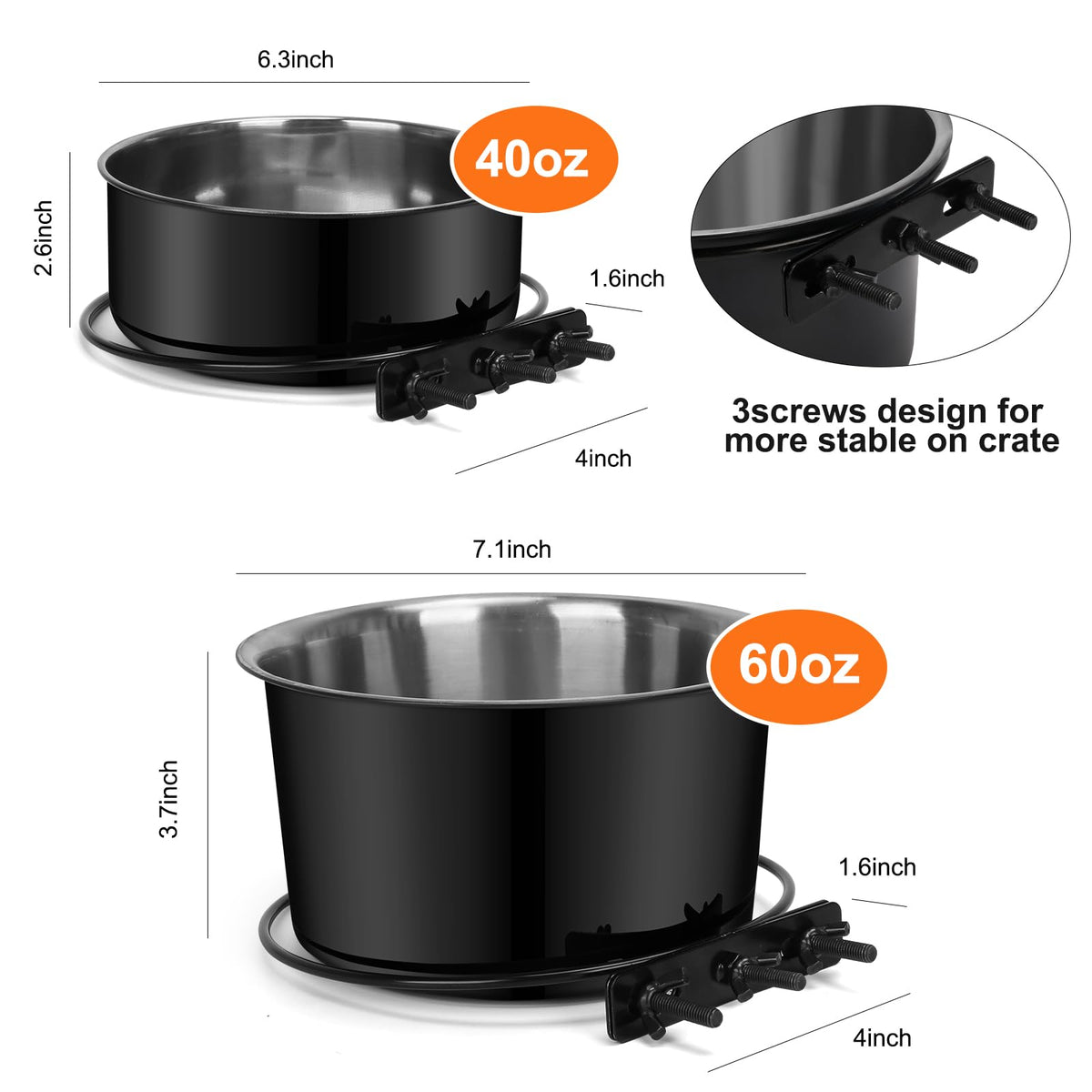 Yecercan Kennel Water Bowl Hanging, 2 Pack Stainless Steel Dog Bowls For Crate No Spill, Large Pet Cage Bowls For Medium/Large D