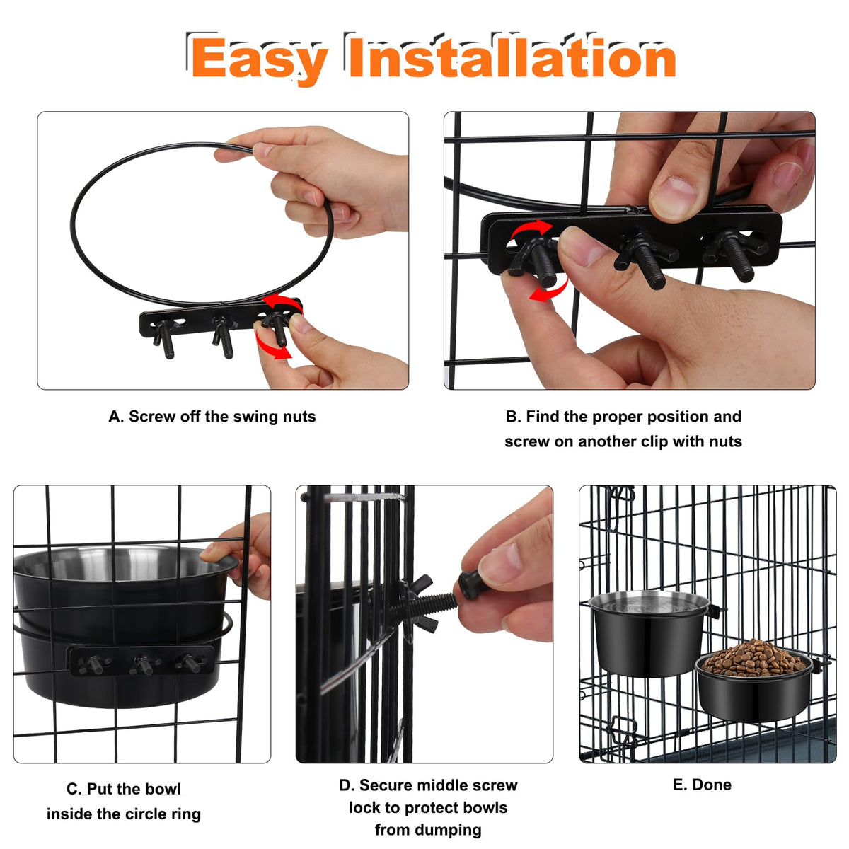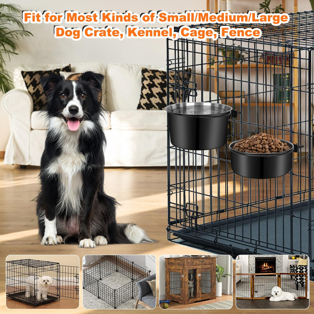Yecercan Kennel Water Bowl Hanging, 2 Pack Stainless Steel Dog Bowls For Crate No Spill, Large Pet Cage Bowls For Medium/Large Dog Cat Rabbit Ferret Guinea Pig