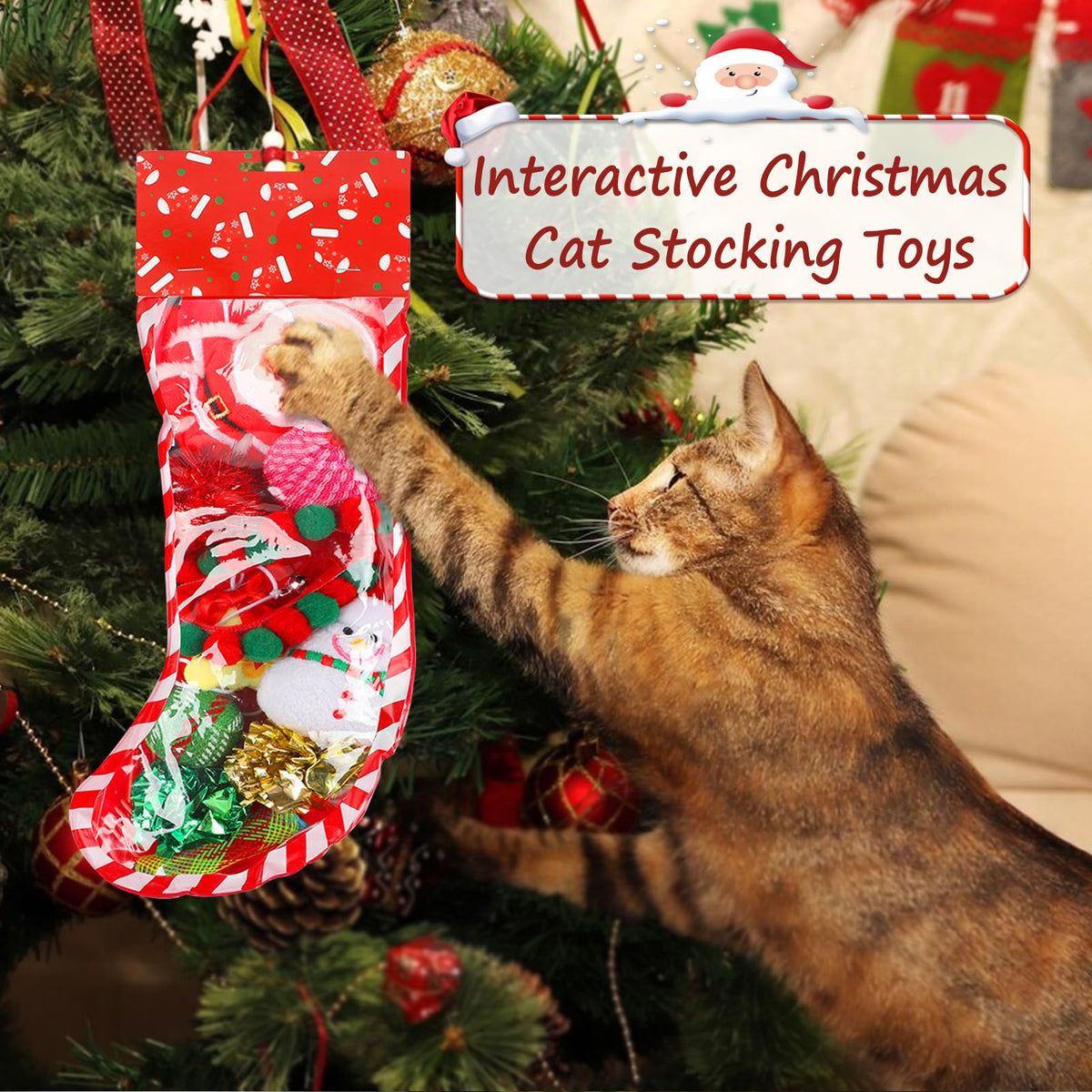 Yeghujar Christmas Stocking Cat Toys - 12Pcs Interactive Set For Cats With Squeaky Toys, Balls, Cat Teasers