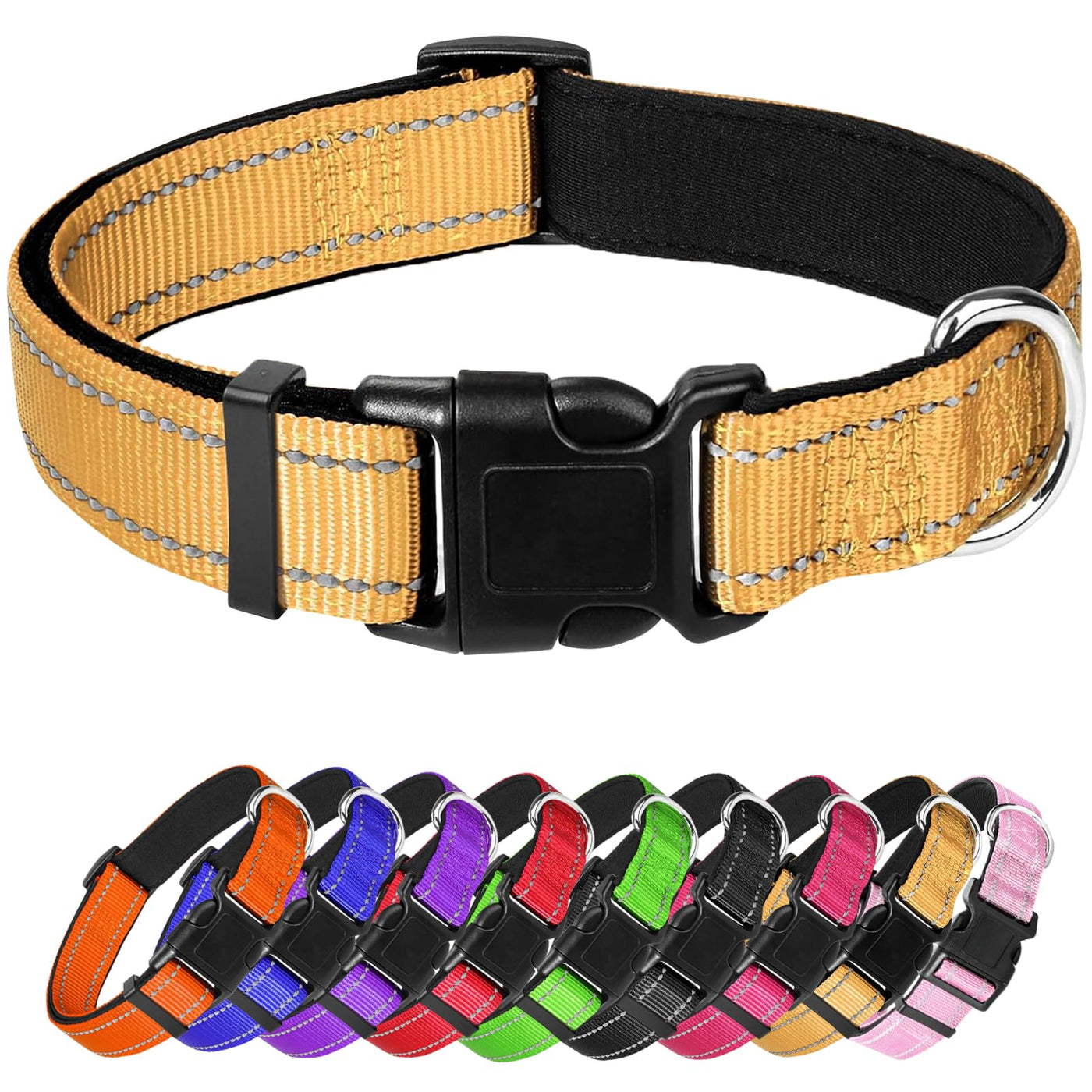 Yellow Dog Collar, Reflective Pet Collar with Buckle Adjustable Safety Nylon Collars for Small Medium Large Dogs, XXL