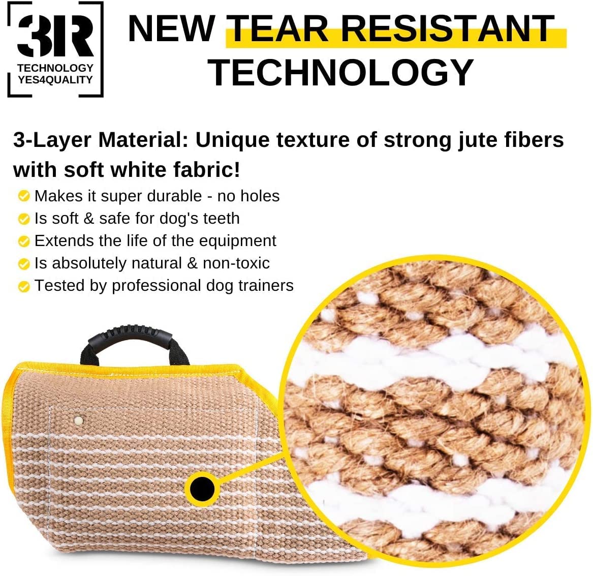 Looking For Crazy Durable & Safe Dog Bite Sleeve? Our Training Bite Sleeve Is The One For You!1) Made Of The Highest Quality Jute Material + Careful Stitching2) Extra Sturdy & Durable - Tested For 30 Tugging Sessions (30 Minutes Each)3) Recommended By Professional Dog Trainers4) Strong & Soft Handles For Maximum Control5) Perfect Size 20X12'' (52X30 Cm)6) The End Of Sleeve Is Closed For Absolute Safety** Click [Add To Cart] ** To Foster A Strong Relationship Between You And Your Dog, And Keep More Money In Your Pocket By Avoiding Spending Money On Products That Dont Worka Real Win-Win!