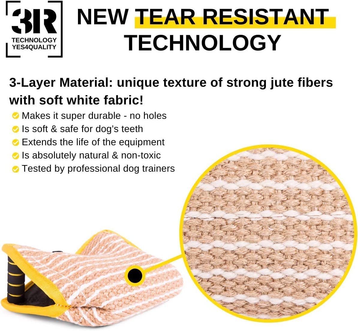 “Want Your Dog To Be Happy And Healthy? Looking For Crazy Durable, Multipurpose & Safe Dog Bite Wedge? Be Wary Of Imitators…Get The Real Thing Here!”We believe that interactive games will help strengthen the bond between you and your furry buddy, making him happy and healthy. Our bite builder is a great reward and exercise toy, suitable for indoor and outdoor games.Top Benefits Why Our Dog Tug Toy Is The One For you!1) 2in1 Design - You get not only a toy, but also practicable and comfortable in use training tool. This is an ideal choice for teaching your dog commands and skills, or just for having fun when playing.2) Extra Durable - high quality Jute material that is non-toxic, stronger and more gentle on dog's teeth than linen or canvas3) Multipurpose - perfect for tug-o-war, protection training, pit bull sports and much more4) Recommended By Professional Dog Trainers5) Perfect Size 13' x 10'6) Comfortable & Sturdy Handles7) 100% Satisfaction or 100% Money Back!PLEASE READ THIS BEFORE BUYING ONLINE OR FROM A STORE… Most sellers/stores don’t want you to know that their products won’t last and get torn apart. When it happens, your dog may eat a small piece of rope or toy stuffing, and get into danger of death!.…plus don’t have extended 60-day guarantee like ours (for good reason).** Click [Add to Cart] ** to foster a strong relationship between you and your dog, AND keep more money in your pocket by avoiding spending money on products that don’t work…a real win-win!