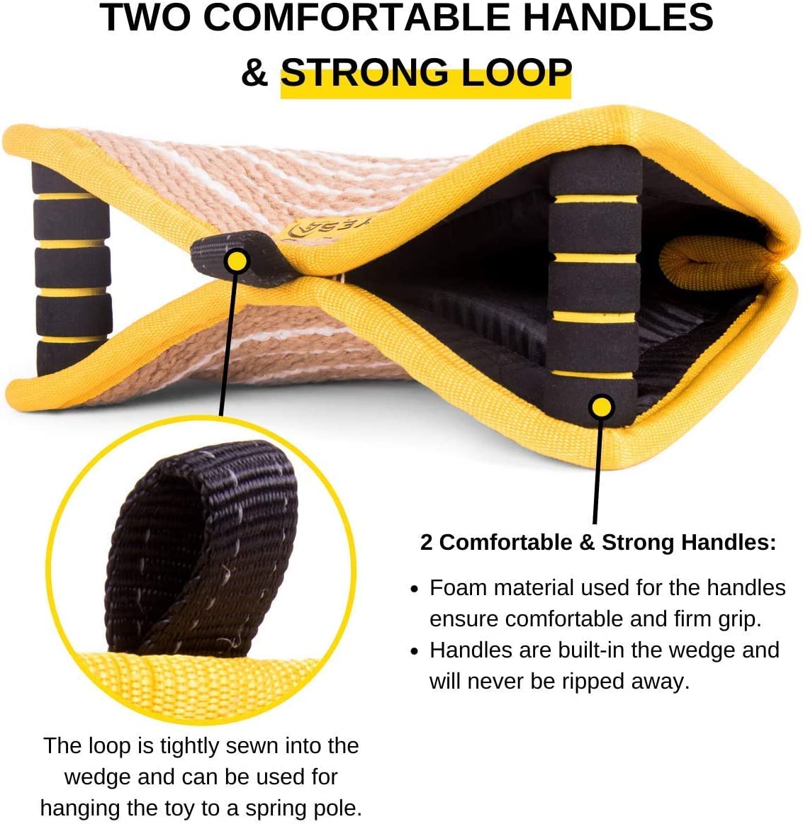 Yes4Quality Durable Dog Bite Wedge 13X10 Inches, Safe Biting Pillow W/ 2 Comfy & Strong Handles, Tough Jute Tug Toy For Med To Large Dogs, Ideal For Tug Of War, K9, Ipo Schutzhund & Puppy Training