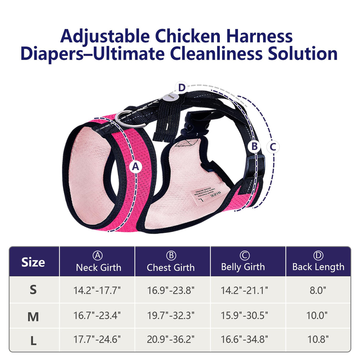 5 Features That Make This Pet Training Set Ideal For Your Chickens: Adjustable size. Comfy fit no matter what. Fun and perky colors. Add style. Add colors. Breathable mesh. Lets their skin breathe. Durable and ultra resilient Nylon fabric. Reinforced stitching and strong plastic buckles.