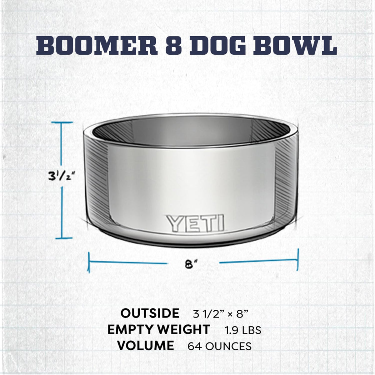 Dinner Is Servedafter A Day Full Of Exploring, Your #1 Deserves Hearty Hydration And A Bowl Full Of Satisfying Sustenance, Best Served In Boomer. This Extra-Strong Dog Bowl Resists Dents And Dings In And Outdoors, While Streamlined Design Makes It Easy Take In Tow. Its The Dog Bowl Theyd Choose To Snack, Sip, And Slurp Out Of.Technology & Featuresfor Added Convenience, The Bearfoot Non-Slip Ring On The Bottom Ensures It Wont Slip And Slide Across The Floor - No Matter How Enthusiastically Your Canine Chows Down. Most Importantly, Its Bpa-Free So You Can Fill Boomer To The Brim With Eight Cups Of Fresh Water, Tasty Treats, Or The Worlds Best Kibble.A Yeti Dog Bowl Designed To Be As Dependable And Adventurous As Your Best Friend. It Holds Eight Cups Of Refreshing Water And Tasty Treats, And Built With Double-Wall, Non-Insulated Stainless Steel Making It Incredibly Durable, Easy To Clean, And Resistant To Rust And Roughhousing. When Theyve Successfully Licked Boomer Clean, Just Throw It In The Dishwasher, Because Time Is Better Spent On The Boat, Duck Hunting, Or Exploring New Trails Together.