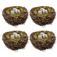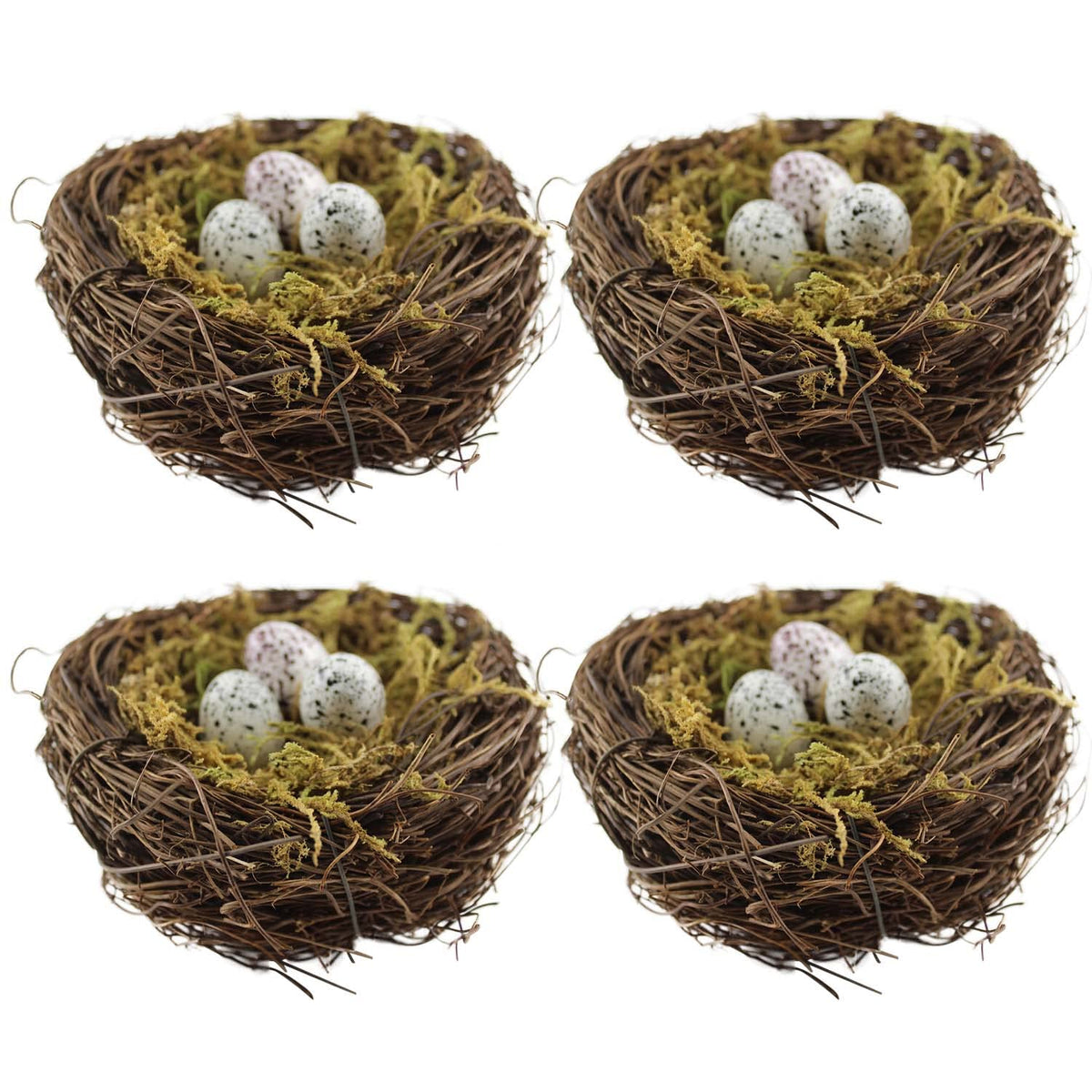 The product includes 4 bird nests 12 artificial bird eggs and 4 moss. You can fill it with fake eggs moss twigs leaves and candies to make each nest unique. It's time to use your imagination and creativity.