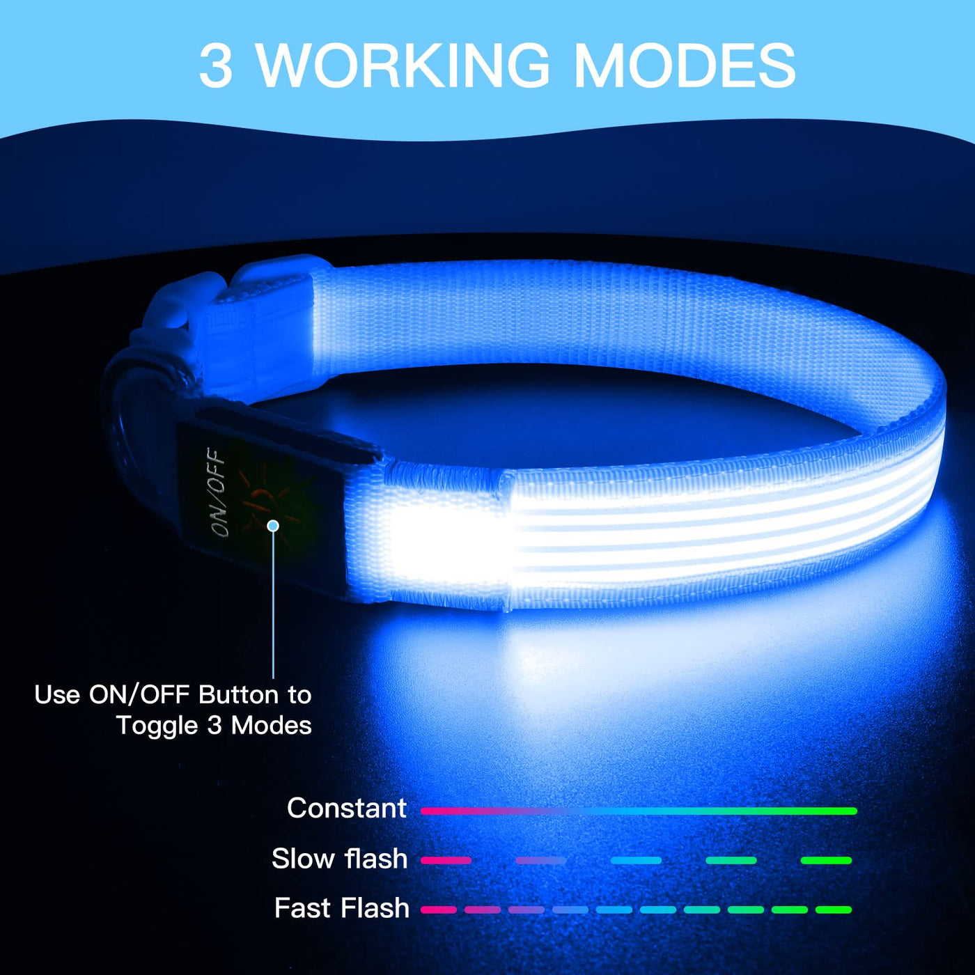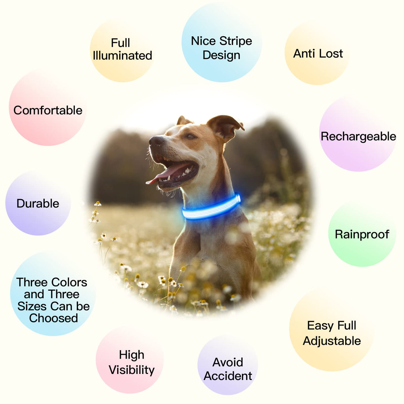 Yfbrite Light Up Dog Collar, Rechargeable Led Dog Collar, Flashing Dog Collar, Adjustable Reflective Dog Collar Safety Glowing A