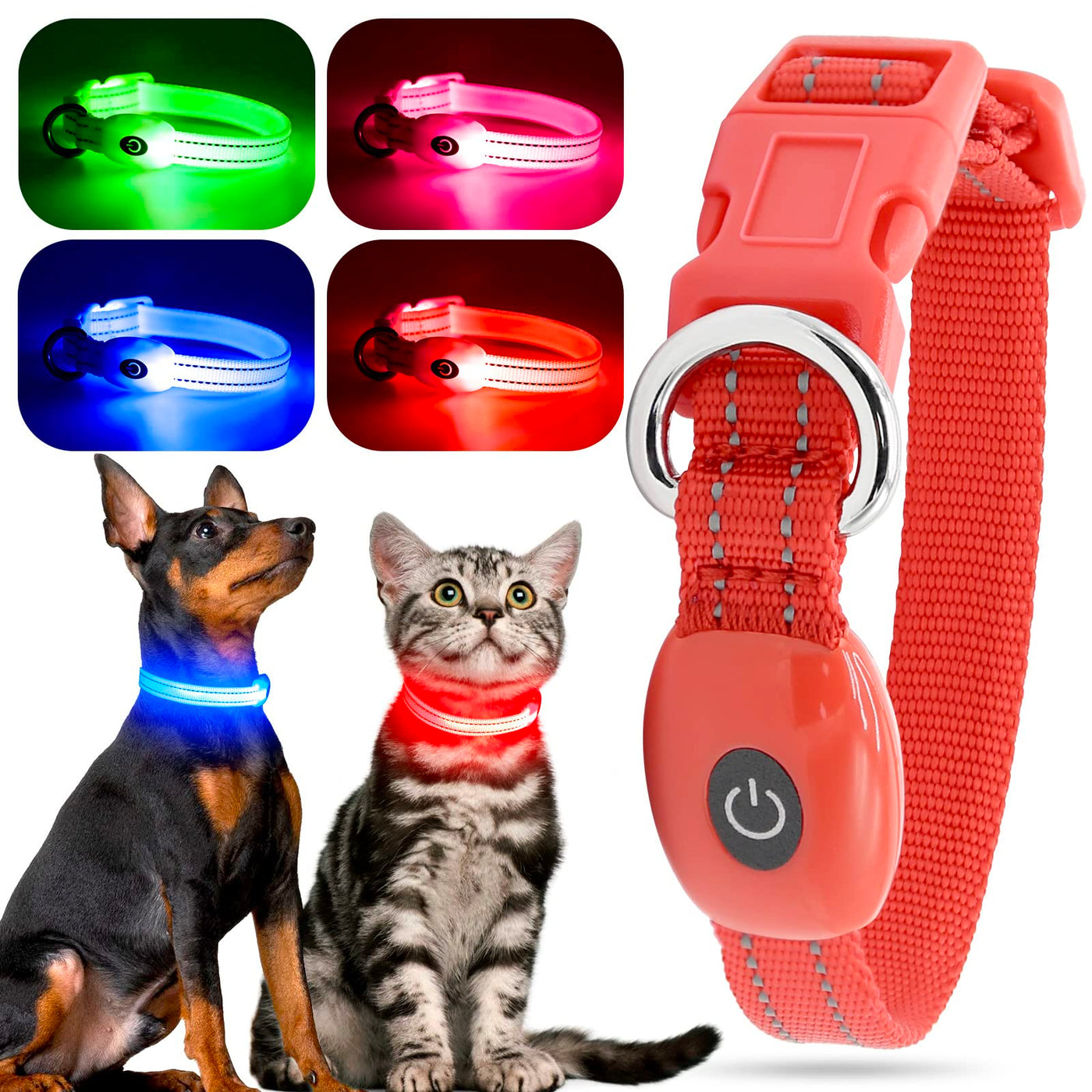 The Story Of Us:I Am A Pet Lover And Have 2 Dogs (One Jacky One Tony) And 1 Dog (Nikky). And I Have An Idea To Do Best Product For Them, Also For Your Pet.Before The Product Launches, I Will Let My Pets Try This Product To Ensure Product Quality. So You Dont Have To Worry About The Safety Of The Product, My Pets Use This Product Every Day.We Aiming At Bringing The Best Products And Services To All Pets !Are You Worried About Your Loved Pet Are Safe At Night And Frustrated Some Pet Necklace Loop Dont Fit Their Size?---Our Adjustable Sizes Item Light Up Dog Collar Can Help You Get Rid Of These Troubles!What Can You Get From Our Light Up Dog Collar?1). Specification For Light Up Dog Collar---Three Flashing Modes: Quick Flashing-Slow Flashing-Stable Glow-Off, Changing The Flash Modes Just By Click The Button On The Batter Case.---Three Available Color Options: Red, Green, Pink, Blue.---Size: Samll:26.6~35.5Cm, Medium: 35.5~52Cm, Large:43.2~65Cm.2) Package Including For Light Up Dog Collar---1X Light Up Dog Collar---1X Usb Charge Cabletips Of How To Use This Light Up Dog Collar? 1. Youd Better Get It Be Fully Charged After First Use Up Of The Battery, Which Will Promote The Service Life Of The Battery For Collar.2. Measuring The Length Of Your Dogs, And Adjust The Buckle Of The Collar And Let It Fit Your Pets, And Fixed It.3. Choose The Flash Mode That You Need, And Turn It Off When Not Needed. Warning:1.Choking Hazard Small Parts, Not For Children Under 3 Years Old.2.Fast Charge Adapter May Cause Serious Damage. Charging With 5V Usb Adapter Only.3.The Color Of The Picture May Vary Depending On The Display. Please Refer To The Actual Object.