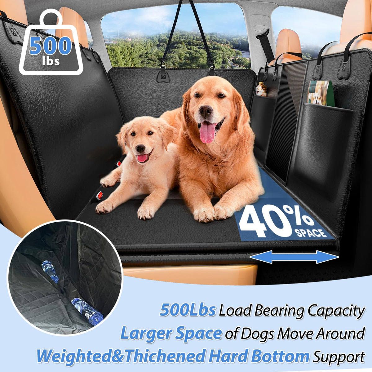 Yfchangle Pu Leather Back Seat Extender For Dogs,Waterproof Back Seat Pet Cover For Dogs,Hard Bottom Up To 500Lbs Dog Car Seat C