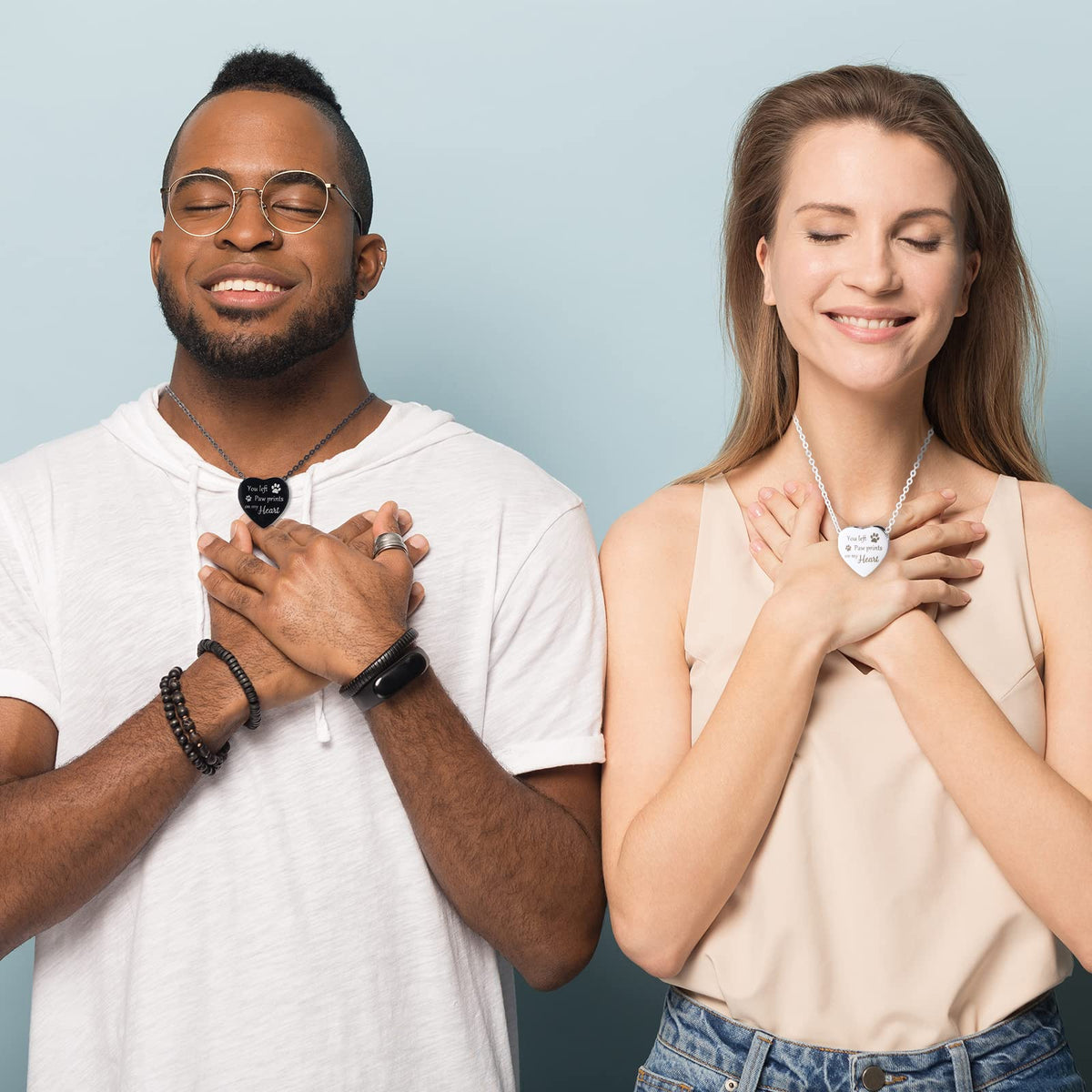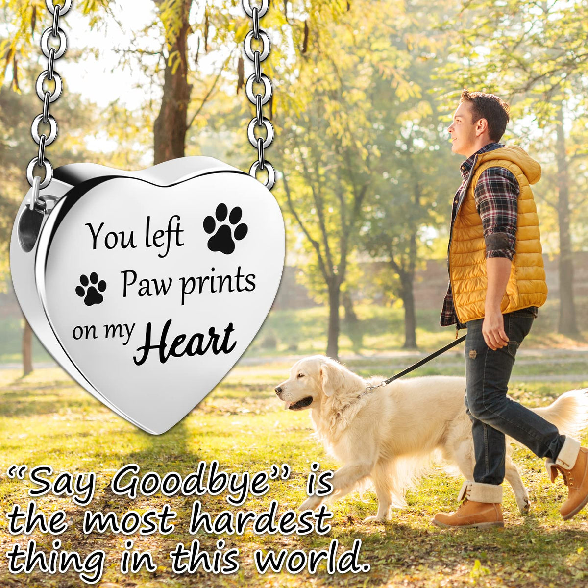 Q: What makes this pet jewelry a good gift for someone grieving?A: This pet cremation jewelry serves as a comforting memorial, designed with a heart shape and paw prints, making it a meaningful gift for anyone who has lost a beloved pet.
