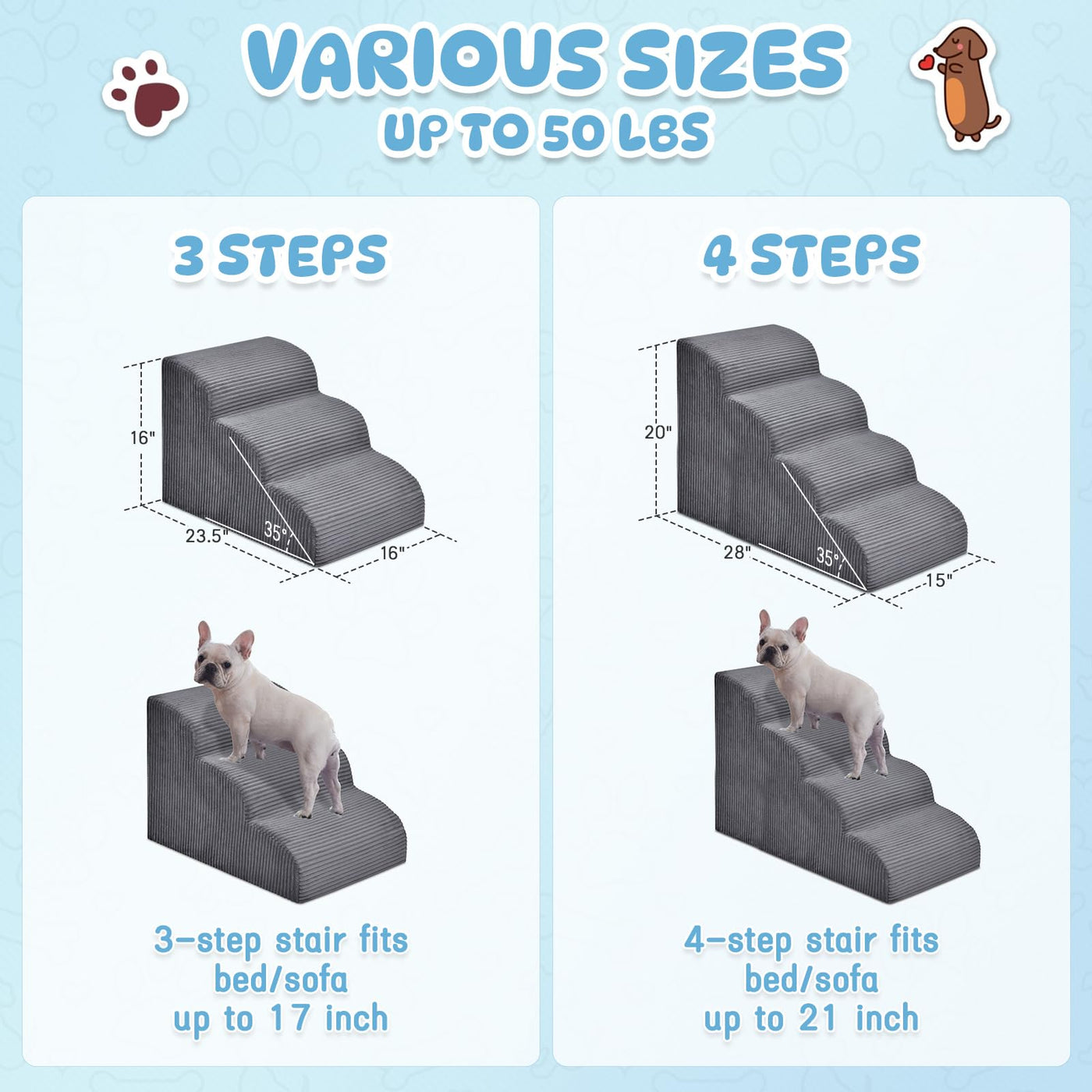 Yiruka Dog Steps for Small Dog, 3-Step Pet Ramp for High Beds and Sofa, Non-Slip Pet Stairs for Small Dogs and Cats, Removable a