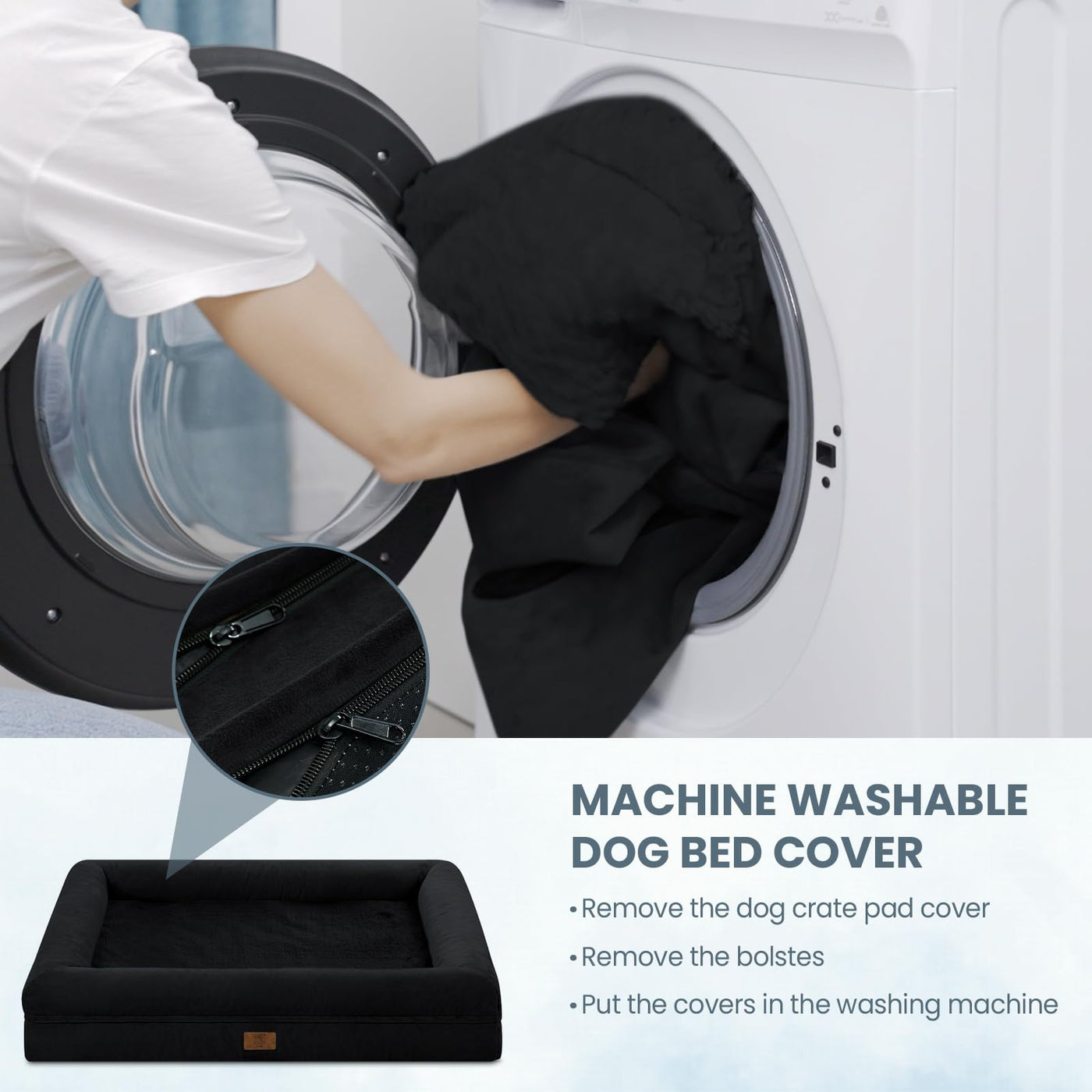 Yiruka Jumbo Dog Bed, Black Orthopedic Dog Bed, Waterproof Dog Bed With Removable Cover, 4-Sides Removable Bolster Dog Soft Sofa Bed With Nonskid Bottom, Washable Dog Beds For Large Dogs