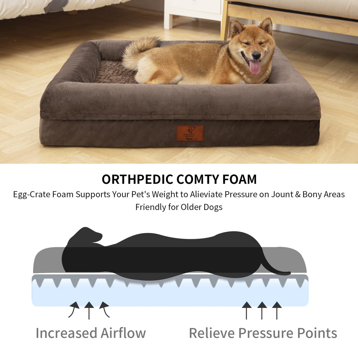Yiruka Large Dog Bed, Brown Orthopedic Dog Bed, Waterproof Dog Bed With Removable Cover, 4-Sides Removable Bolster Dog Soft Sofa Bed With Nonskid Bottom, Washable Dog Beds For Large Dogs