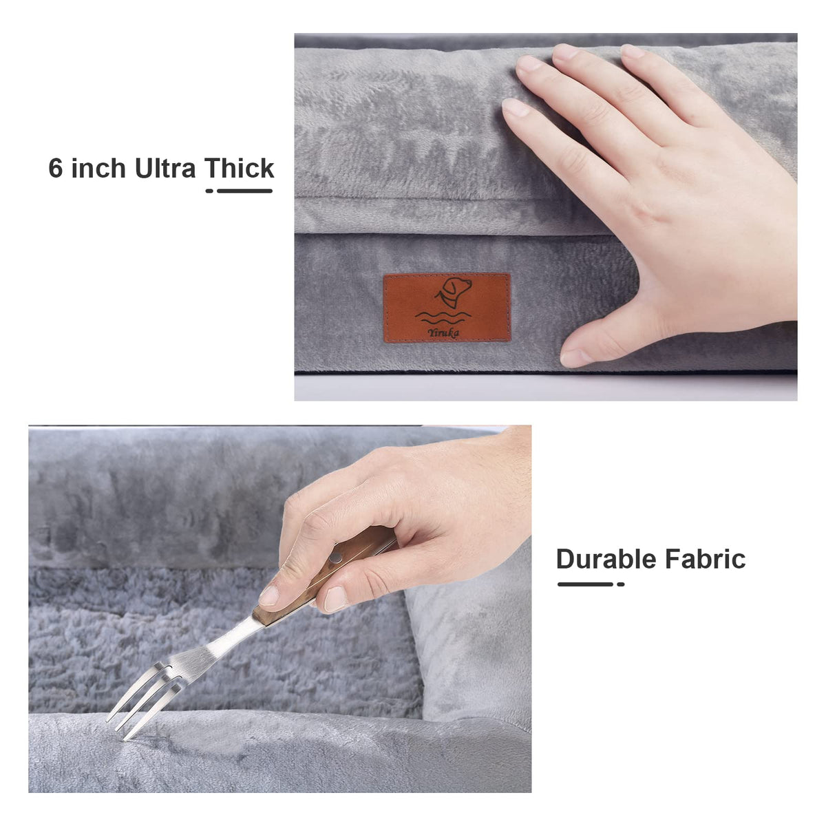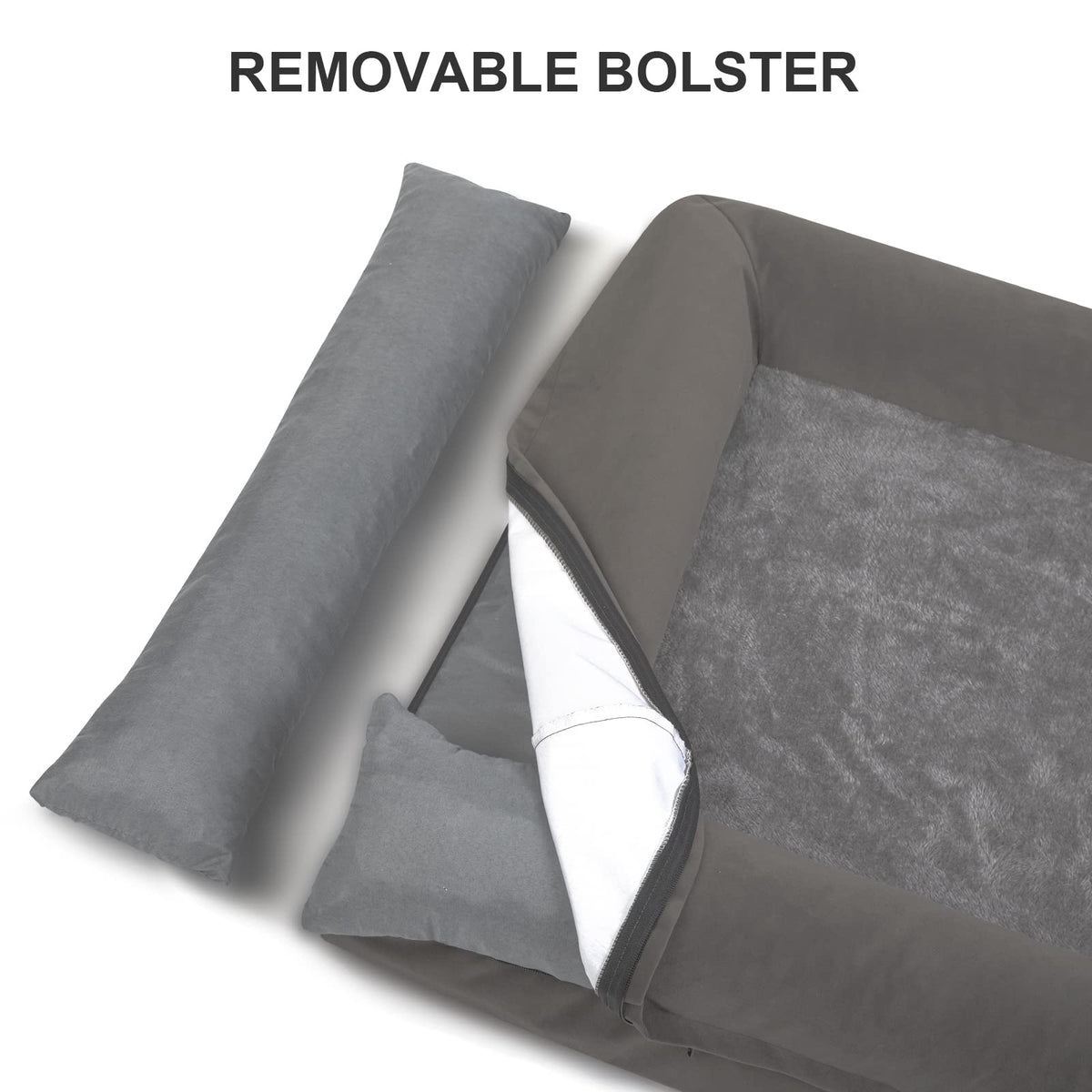 Yiruka Large Dog Bed, Grey Orthopedic Dog Bed, Waterproof Dog Bed With Removable Cover, 4-Sides Removable Bolster Dog Soft Sofa Bed With Nonskid Bottom, Washable Dog Beds For Large Dogs