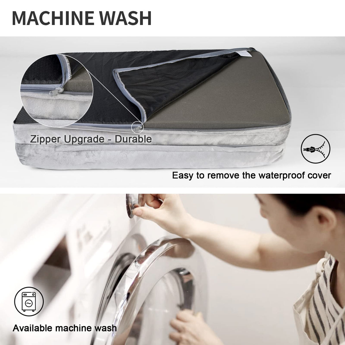 Q: Is the dog bed waterproof?A: Yes, the Yiruka dog bed features a waterproof inner lining that prevents liquids from penetrating the foam, ensuring that the bed remains clean and dry, which is especially beneficial for pets that may have accidents.