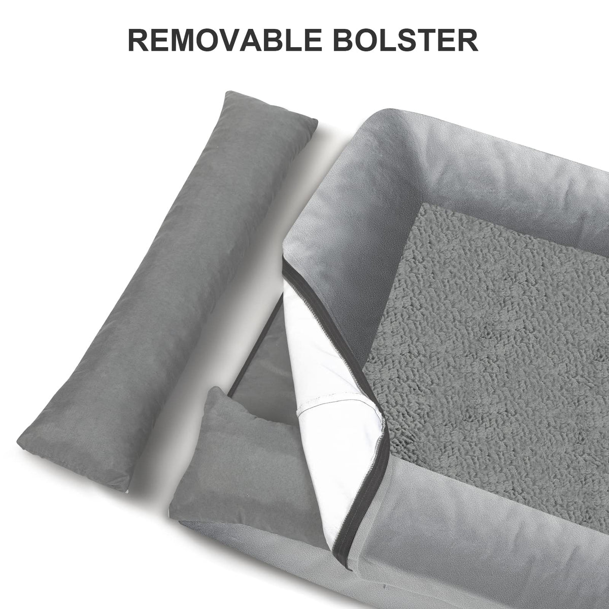 THIcK AND SUPPORTIVE Yiruka orthopedic dog bed features a thick foam base that provides optimal support and cushioning for your furry friend so they can relax comfortably and relieve joint pressure With its thick high-density foam construction this dog bed provides a plush and supportive sleeping surface that will help your pup stay comfortable and well-rested EL MEMORY FOAMThe top of the foam in memory foam dog bed is infused with gel which helps regulate your pets body temperature and keep them compared with conventional foam a gel memory foam dog bed with better cooling capacity works to absorb and draw heat away ALL-AROUND BOLSTER DESIgN Our waterproof dog bed features a full bolster design that surrounds the entire perimeter of the large dog bed This provides your furry friend with a cozy and secure space to rest their head no matter where they are in the bed AXIMUM cOMFORT The comfy dog bed with is filled with a soft plush material that provides additional comfort and support for your dog making their sleeping experience even more comfortable EASY TO cLEAN Like the beds cover the bolster is also removable and the cover can be machine-washable making it easy to keep your dogs bed clean and fresh The washable dog bed not only provides comfort and functionality but also adds a stylish touch to any room in your home