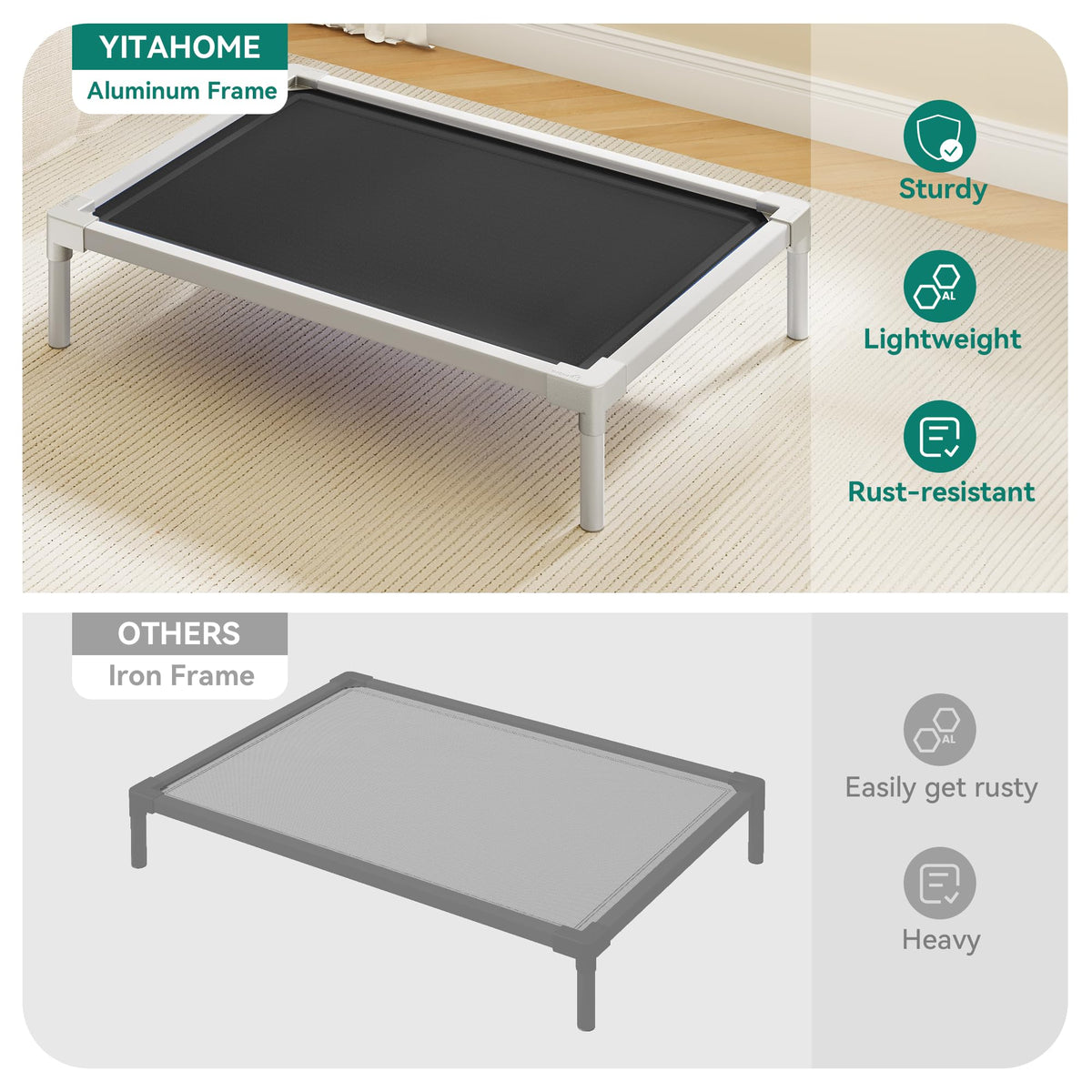 Yitahome 42 Inch Cooling Elevated Dog Bed, Sturdy Dog Bed With Aluminum Frame, Breathable Textilene Mesh, Enclosed Edges, Non-Sl