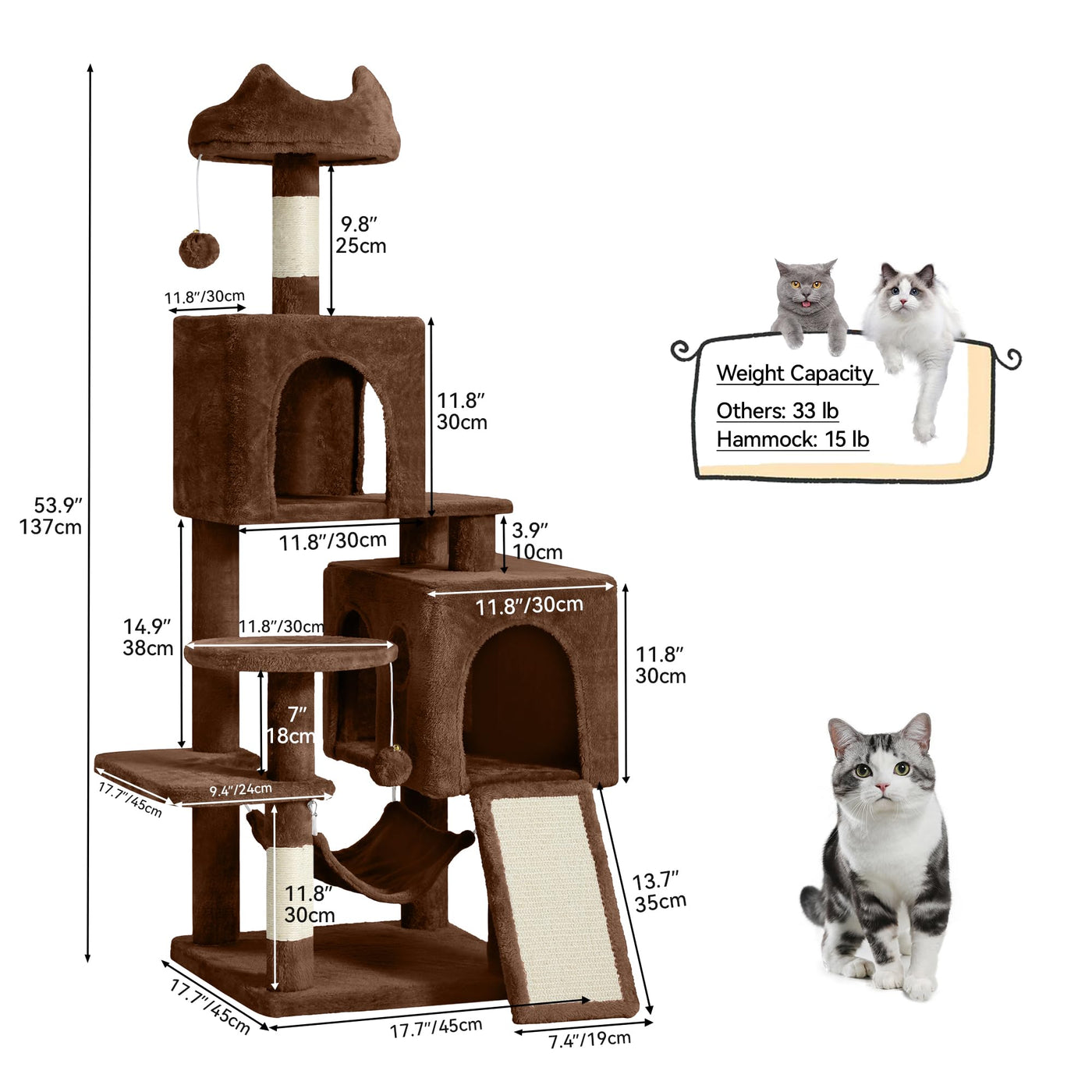Yitahome 54In Cat Tree Tower Condo, Multi-Level With Sisal Scratching Post, Cat Condos, Plush Top Perches, Hammock, Space Saving