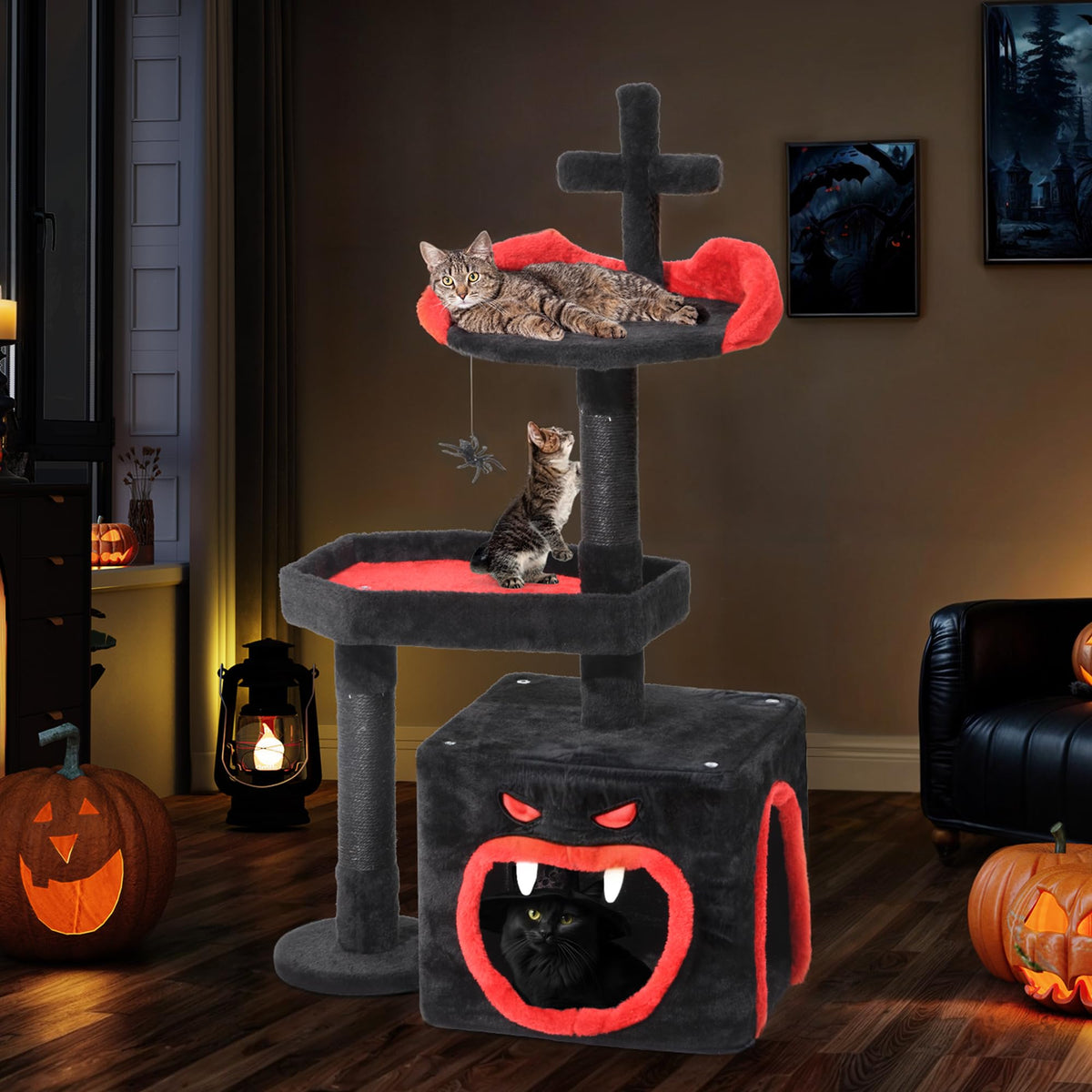 Yitahome Gothic Cat Tree With Coffin Bed, 38.6'' Indoor Cat Tower Featuring Spacious Condo, Spider Hanging Ball, Scratching Post