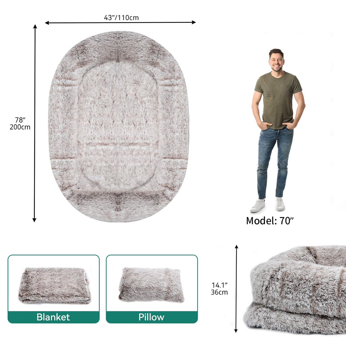 Yitahome Human Dog Bed, 79''X43'' Extra Large Memory Foam Dog Beds For Adults And Pets With Blanket And Pillow, Washable Fur Cov