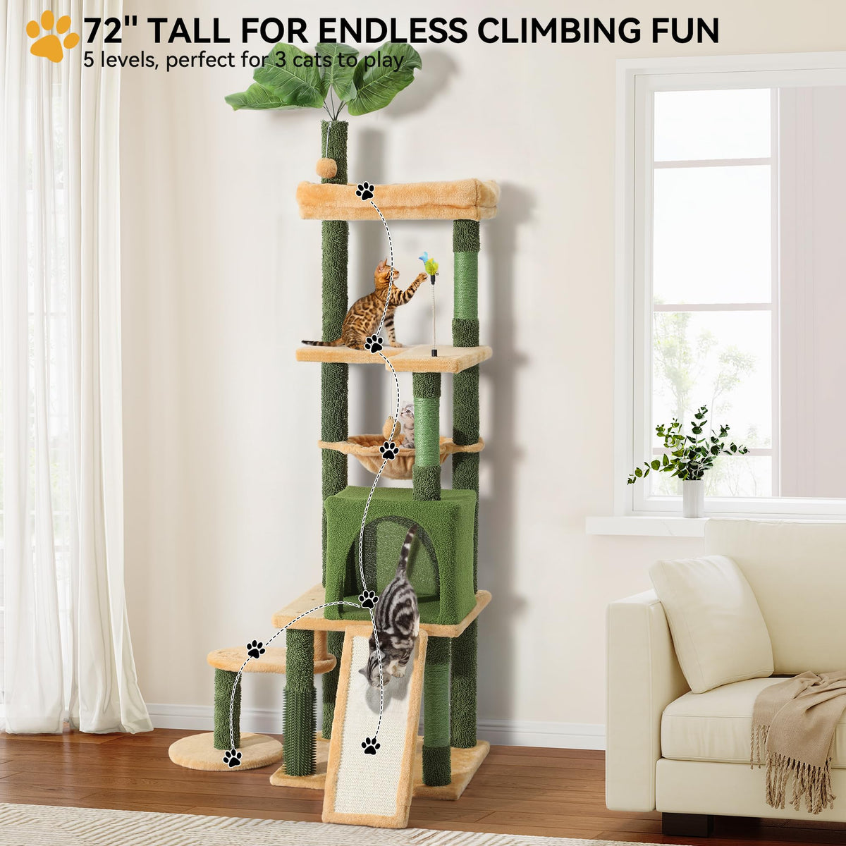 Yitahome Tall Cat Tree Tower With Leaves For Indoor Cats, 72.8In Cute Cat Climbing Tower With Self-Grooming Brush, Cat Condo, To