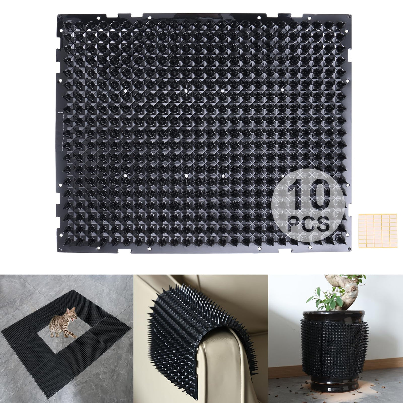 Yiteshi 10 Packs Scat Mat For Cats, 13X16 Inches Pet Deterrent Spikes, Indoor Outdoor Humane Cat Repellent Fence (Black)
