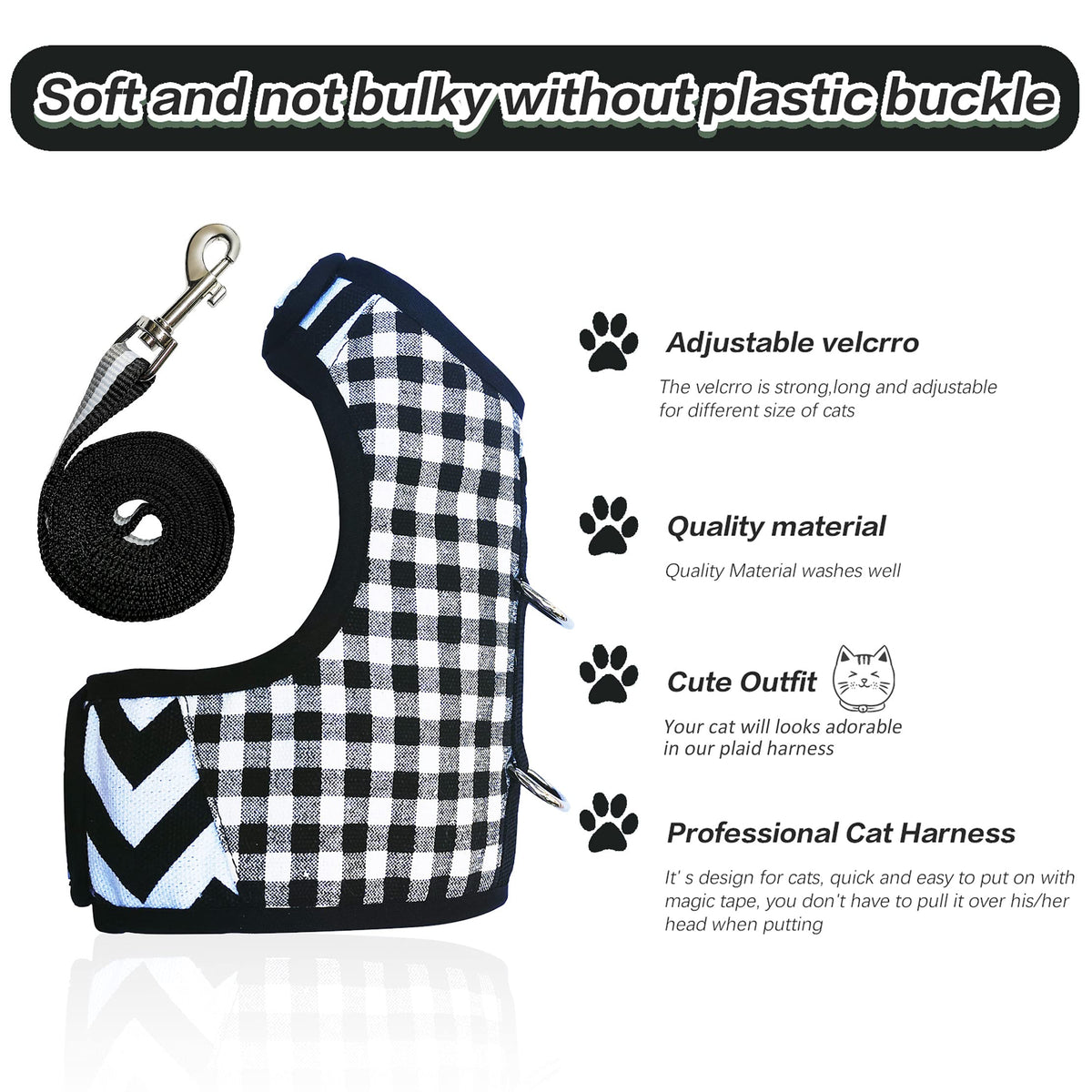 Yizhi Miaow Cat Harness and Leash for Walking Escape Proof, Adjustable Cat Vest Harness, Padded Stylish Cat Walking Jackets, Bla