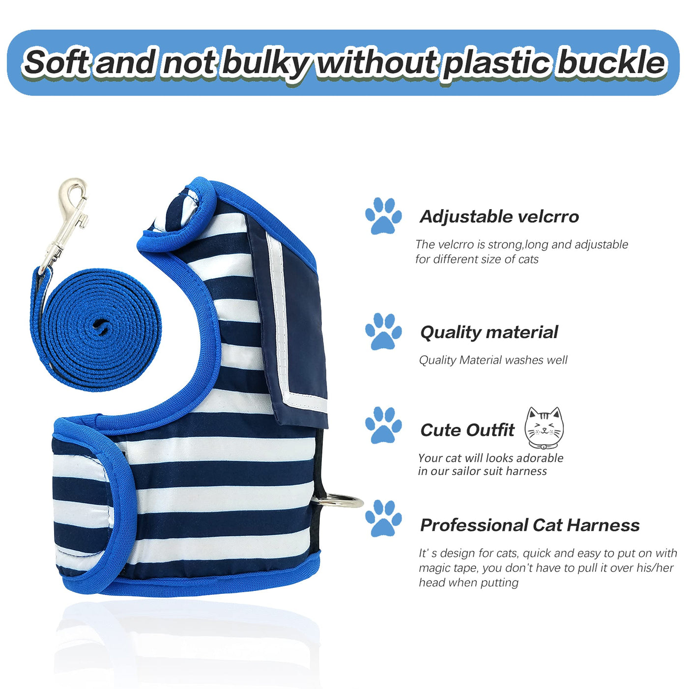 Yizhi Miaow Cat Harness And Leash For Walking Escape Proof, Adjustable Cat Vest Harness, Padded Stylish Cat Walking Jackets, Sailor Suit Navy, Large