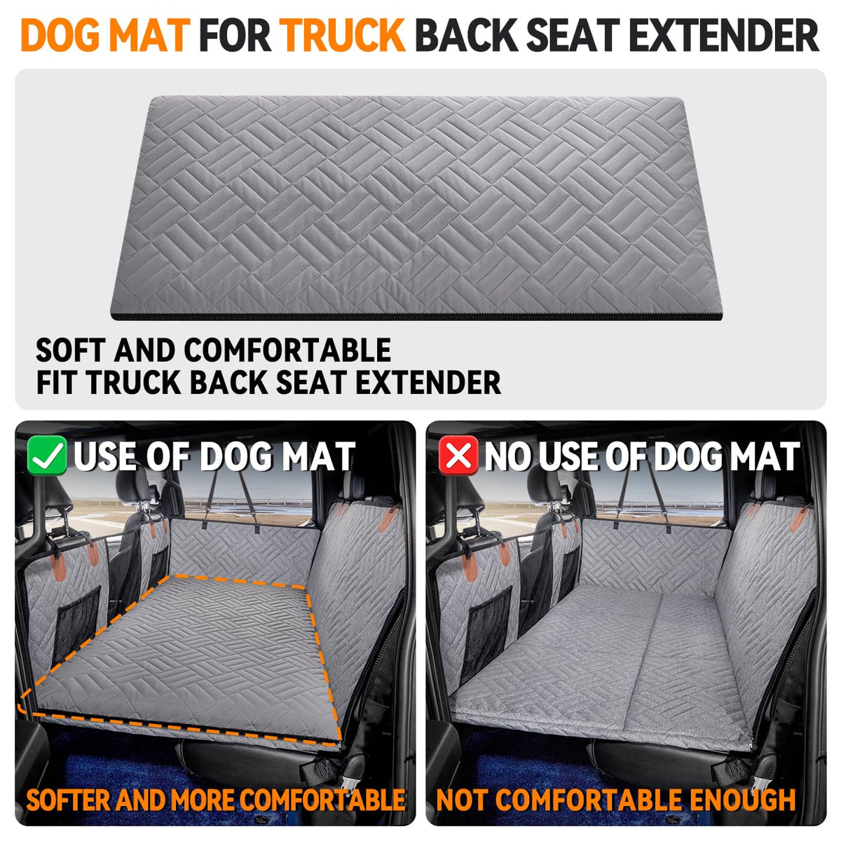 Dog Mat For Back Seat Extender For Dogs,Dog Bed For Car Back Seat,Car Mattress For Hard Bottom Car Seat Cover For Dogs,Pet Cover For&Nbsp;Dog Hammock For Car ?Dog Mat&Nbsp;For Back Seat Extender?We Have Found That Many People Will Put Blankets On Their Dog Seat Cover For Back Seat That Are Not The Right Size Or Are Not Comfortable Or Aesthetically Pleasing. We Have Designed The Washable Dog Bed For Back Seat Extender To Make The Dog More Comfortable In The Back Seat Extender.?Waterproof And Wear-Resistant?The Cover Of The Large Dog Bed Is Made Of Waterproof And Wear-Resistant Fabric. ?Fit Most Back Seat?The Size Of Dog Mat For Back Seat Cover&Nbsp;Is 50.7*16.5*1.8In.The Size Of Dog Mat For Car Back Seat Extender Is 50.7*24.6*1.8In.The Size Of Dog Mat For Truck Back Seat Extender Is 55.9*30.3*1.8In. ?Soft And Comfortable?The Dog Mat Is Used With The Dog Bed To Make The Dog More Comfortable During The Ride. ?Note?The Large Dog Bed&Nbsp;Is Compressed Packaging, After Decompression Will Be A Little Flat At First, The Dog Mat&Nbsp;Will Gradually Become Fluffy Within 24 Hours After Opening The Package.