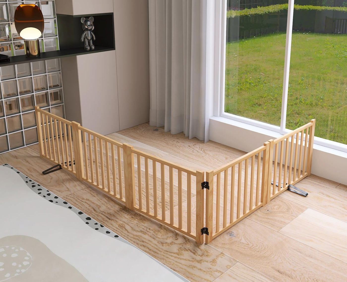 YOCAN Freestanding Wooden Pet Gate - The Perfect Indoor Barrier for Your Furry Friends! Natural & Healthy Material Crafted from 100% natural New Zealand pine solid wood, our pet gate is completely free of paint, formaldehyde, and barbs, ensuring a safe and odorless environment for your pets and family. The non-toxic, splinter-free design provides a healthy space for your small to medium-sized pets. Plus, the included non-slip rubber feet protect your floors while keeping the gate securely in place. Use it as a pet fence, room divider, or playpen-versatile and worry-free! No Assembly Required - Ready to Use! Say goodbye to complicated setups! This freestanding dog gate comes fully assembled, so you can place it anywhere right out of the box. Whether you need a barrier for doorways, stairs, hallways, or rooms, simply unfold and position it to keep your pets safely contained. Flexible Folding Design for Easy Storage & Customization Featuring 360 durable metal hinges, our pet gate allows U/Z-shaped folding for multiple configurations. Need a straight barrier or a curved play area? No problem! The panels adjust effortlessly to fit your space. When not in use, fold it compactly for hassle-free storage. Adjustable & Versatile for Any Space This configurable pet gate includes 2/4/6 panels (options available), each rotating 360 for endless setup possibilities. Use a single panel for narrow doorways or connect multiple panels to block wider areas like living rooms or staircases. Perfect for puppies, dogs, cats, and other small pets! Customer Satisfaction Guaranteed We stand by our product! If youre not completely happy, contact us anytime-were here to help. Give your pets a safe, movable space with YOCANs foldable, no-assembly-required wooden pet gate today! Perfect for indoor use - no drilling, no mess, just pure pet-friendly convenience!