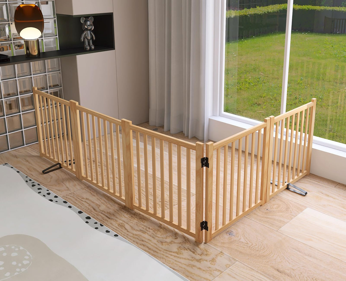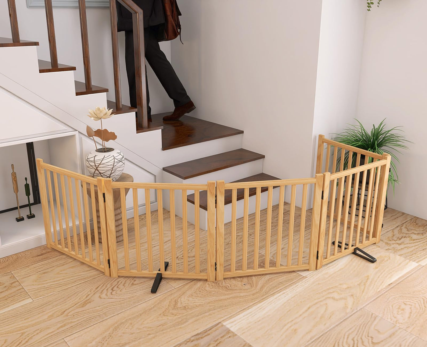 YOCAN Freestanding Wooden Pet Gate - The Perfect Indoor Barrier for Your Furry Friends! Natural & Healthy Material Crafted from 100% natural New Zealand pine solid wood, our pet gate is completely free of paint, formaldehyde, and barbs, ensuring a safe and odorless environment for your pets and family. The non-toxic, splinter-free design provides a healthy space for your small to medium-sized pets. Plus, the included non-slip rubber feet protect your floors while keeping the gate securely in place. Use it as a pet fence, room divider, or playpen-versatile and worry-free! No Assembly Required - Ready to Use! Say goodbye to complicated setups! This freestanding dog gate comes fully assembled, so you can place it anywhere right out of the box. Whether you need a barrier for doorways, stairs, hallways, or rooms, simply unfold and position it to keep your pets safely contained. Flexible Folding Design for Easy Storage & Customization Featuring 360 durable metal hinges, our pet gate allows U/Z-shaped folding for multiple configurations. Need a straight barrier or a curved play area? No problem! The panels adjust effortlessly to fit your space. When not in use, fold it compactly for hassle-free storage. Adjustable & Versatile for Any Space This configurable pet gate includes 2/4/6 panels (options available), each rotating 360 for endless setup possibilities. Use a single panel for narrow doorways or connect multiple panels to block wider areas like living rooms or staircases. Perfect for puppies, dogs, cats, and other small pets! Customer Satisfaction Guaranteed We stand by our product! If youre not completely happy, contact us anytime-were here to help. Give your pets a safe, movable space with YOCANs foldable, no-assembly-required wooden pet gate today! Perfect for indoor use - no drilling, no mess, just pure pet-friendly convenience!