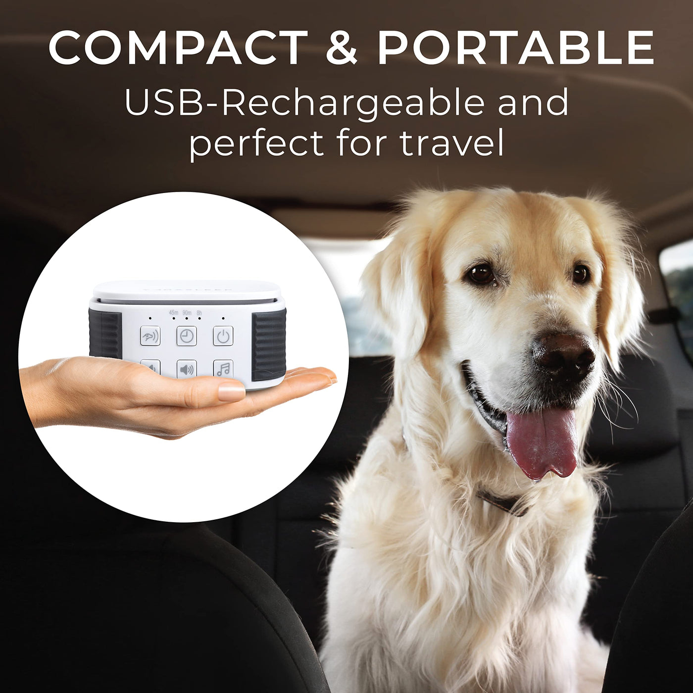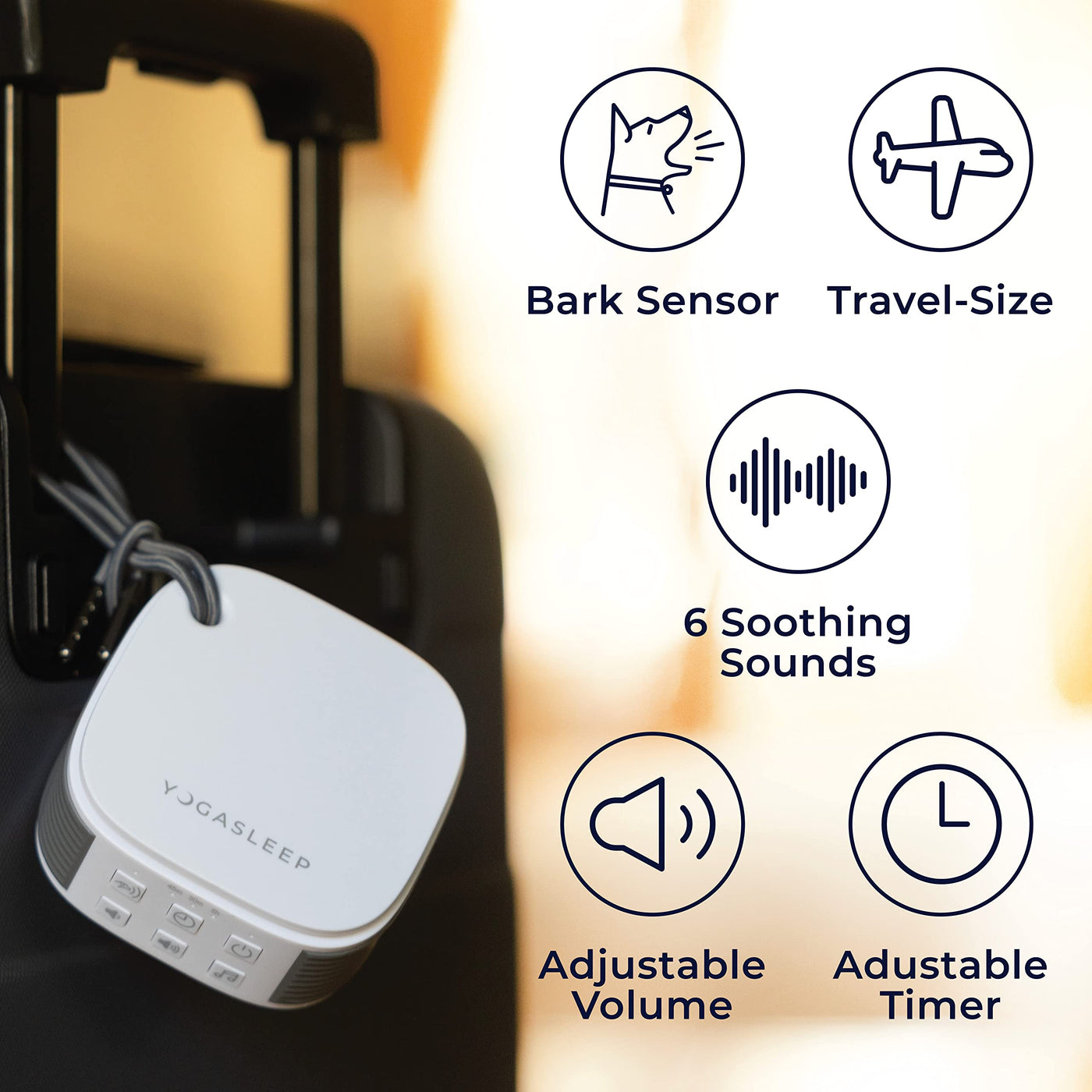 Yogasleep Pawzz Travel White Noise Machine for Dogs & All Pets. Compact Size, Integrated Bark Sensor, 6 Automatic Relaxing Natur