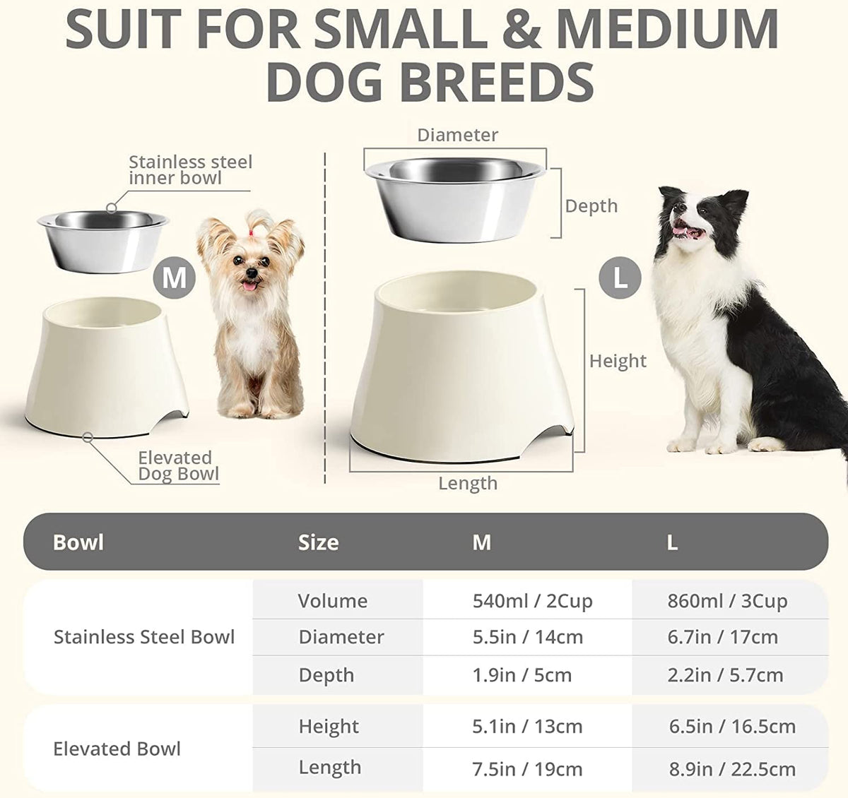 Yoken Sturdy Elevated Dog Bowls 2 Packs, Prevention of Vertebrae Disease, Non-Slip, High Capacity, Colorful Raised Bowls for Med