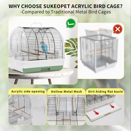 Yokolo Bird Cage 27-inch Inch Wrought Iron Parrot Cage Acrylic See-Through Standing Flight Parakeet Cage for Cockatiels Cheek Co