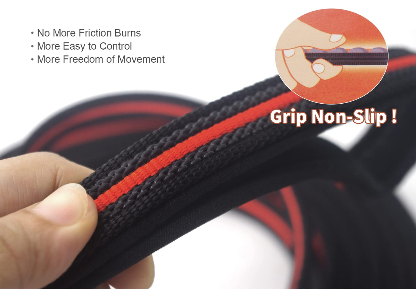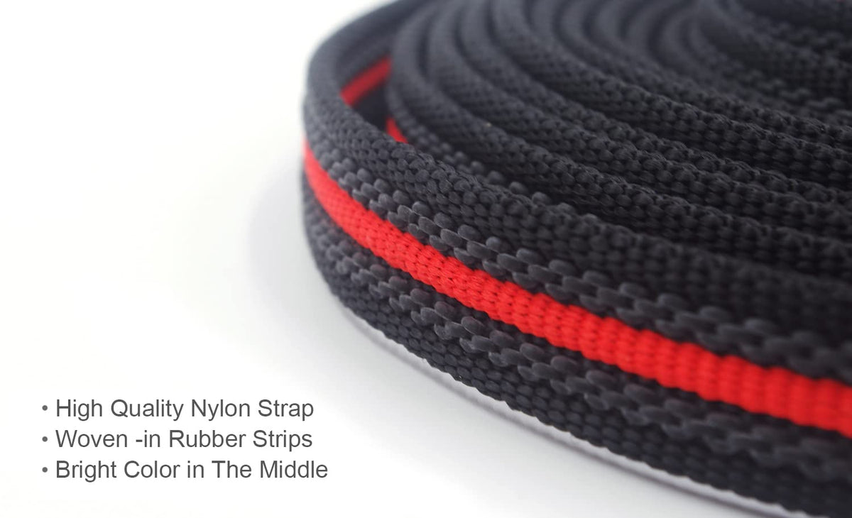 Size and Color S: 10 ft long x 0.7 inch wide. Color: black and green M: 15 ft long x 0.7 inch wide. Color: black and red L: 33 ft long x 0.7 inch wide. Color: black and red XL: 50 ft long x 0.7 inch wide. Color: blue and green
