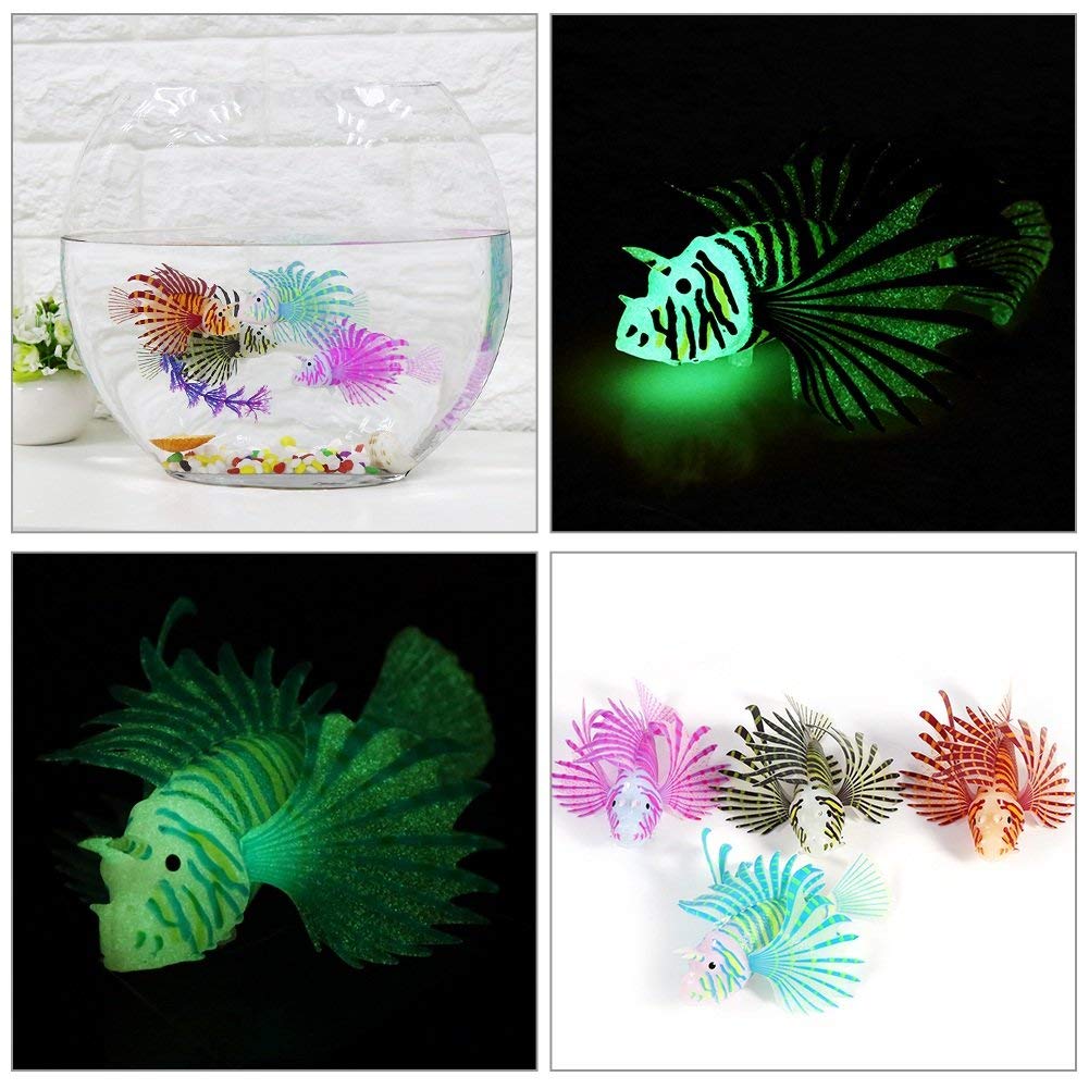 Features: Do you want to add some vitality to your existing aquarium, and want buy some decorating scenery or simulation animals. Our new arrived silicone lionfish may be your best choice. The silicone fish can absorb light or lights at night, and glowing bluish light in the dark. Beautiful lionfish shape, colorful and beautiful.