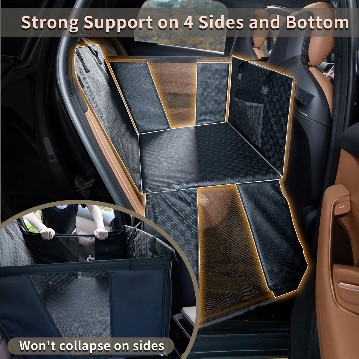 Yoveekle Dog Car Seat For Large Dogs, Waterproof Faux Leather Pet Carrier For Active Pets At Back Seat Half Hammock With 4 Hard