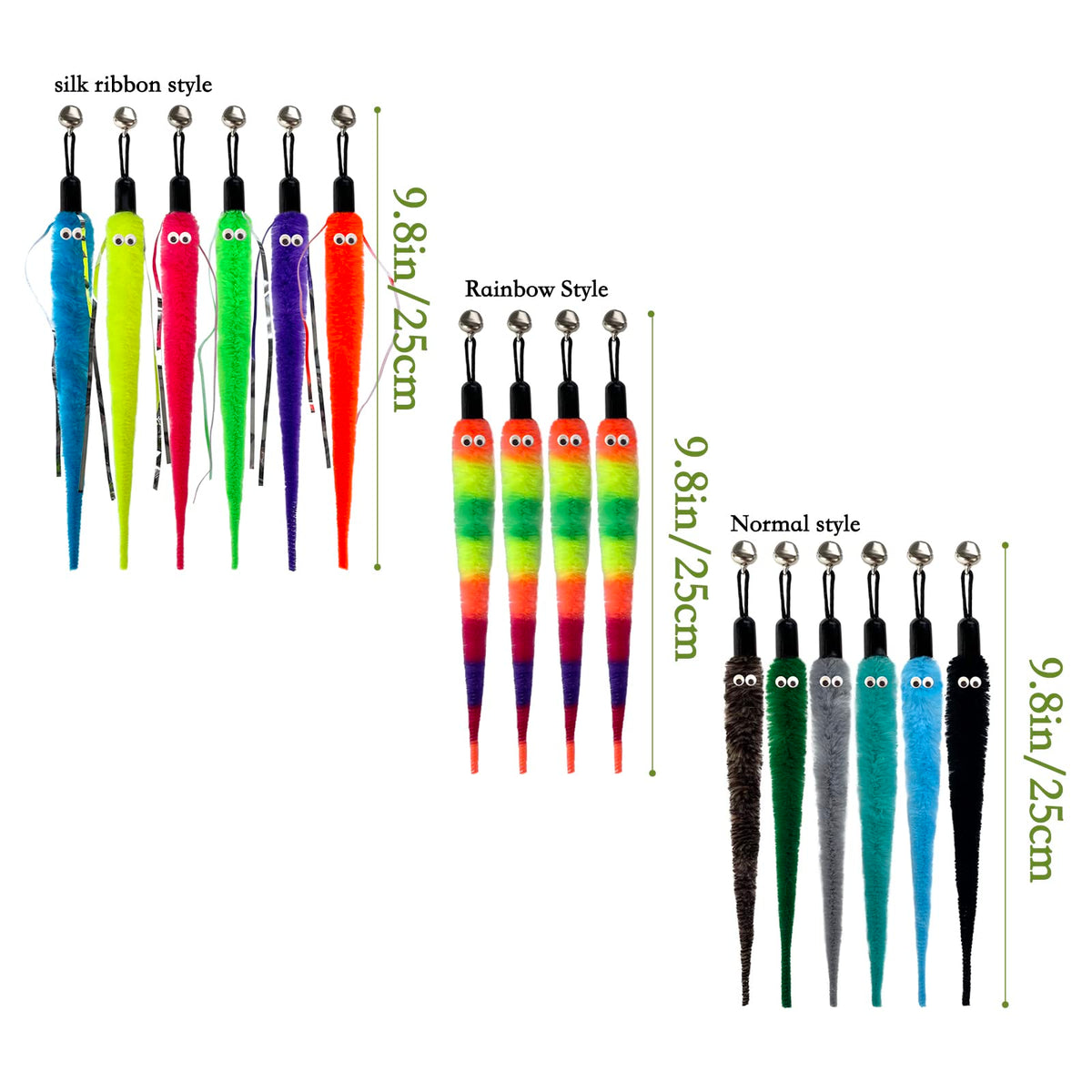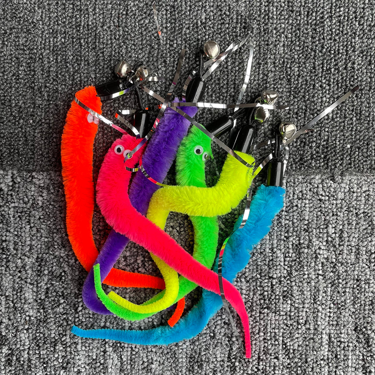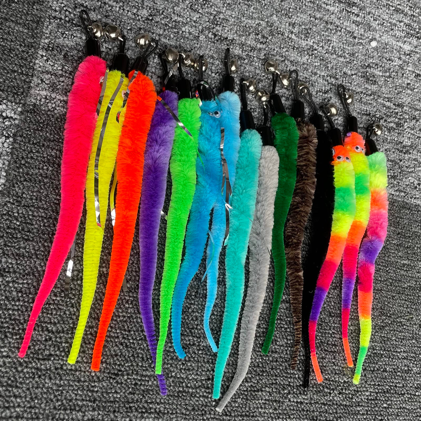 Yubonus Cat Wand Toy Refills 16Pcs With Bells, Interactive Durable Worm Attachments For Indoor Cats, Safe Teaser Replacement Cat