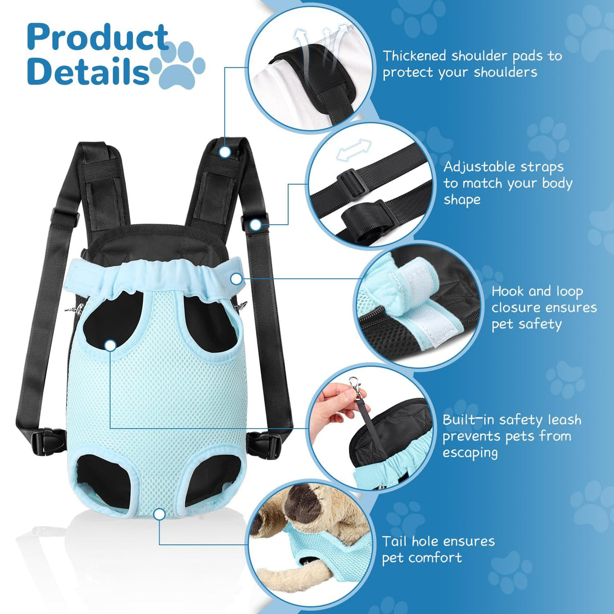 Yudodo Pet Dog Carrier Backpack Adjustable Dog Front Carrier, Legs Out Easy-Fit Dog Travel Backpack Carrier For Hiking Camping For Small Medium Dogs Cats And Rabbits (Medium (Pack Of 1), B-Sky)