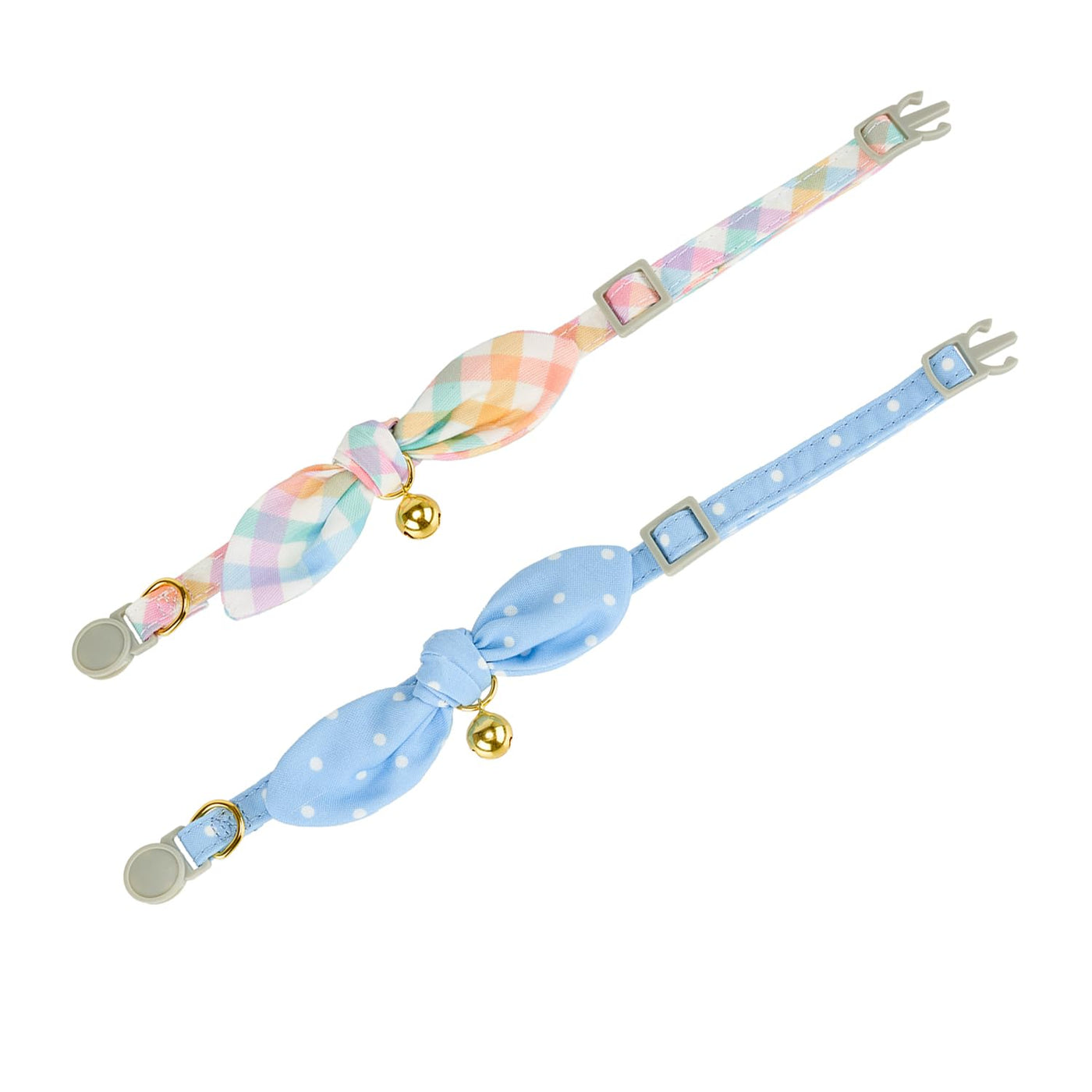Yudote Bowtie Cat Collar With Bell, 2 Pack Cotton Breakaway Kitten Collars With Removeable Bow Stylish Cat Collars, Gradient Pla