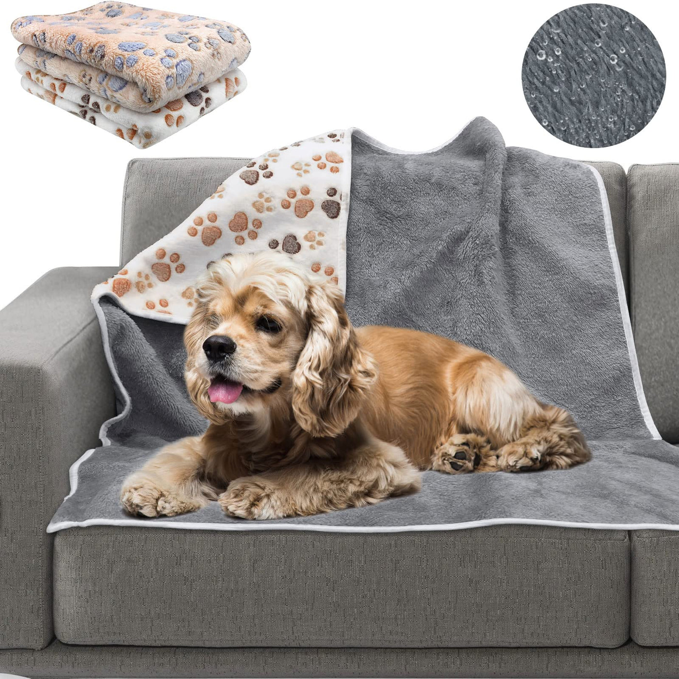Yuepet Waterproof Dog Blankets, 2 Pack Washable Dog Blankets For Bed Couch Sofa Protector Fleece Flannel Puppy Blanket Soft Plus
